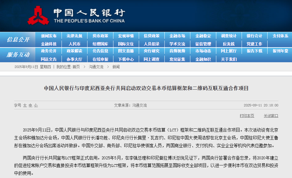 【导读】中国人民银行与印度尼西亚央行共同启动双边交易本币结算(LCT)框架和二维码互联互通合作项目 央行最新消息! 9月11日晚间,央行官网消息显示,中国人民银行与印度尼西亚央行共同启动双边交易本币 ...