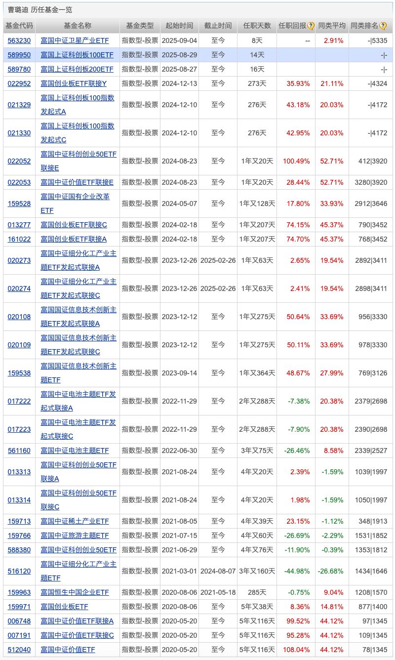2、基金简称:富国上证科创板100ETF 基金类型:股票型证券投资基金 基金经理:曹璐迪 业绩比较基准:上证科创板100指数收益率 基金经理过往业绩: 封面图片来源:图片来源:视觉中国-VCG211390665395 |