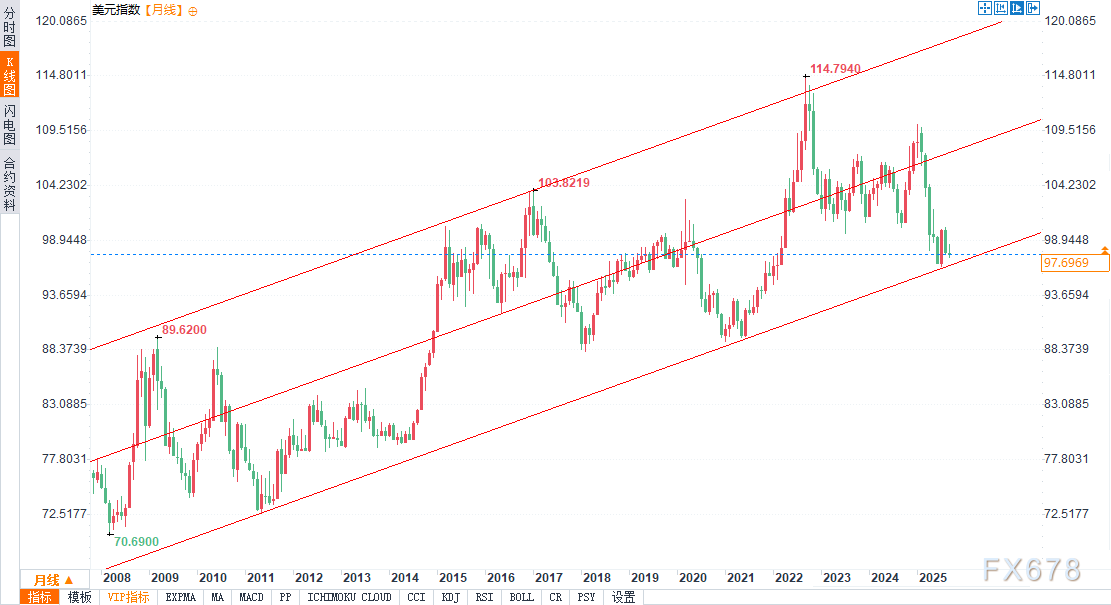 法国与日本的政治危机削弱了美元主要竞争对手——欧元与日元的影响力。法国总理和日本首相的辞职,以及法国即将举行议会选举的动向,暂时让美元“淡忘了”货币政策这一影响因素。此前,3月美国就业数据经历历史性修正,较此前预估减少91.1万个岗位,且8月生产者价格指数意外下滑,此后美联储进一步实施宽松政策的可能性正迅速上升。 ![]() 美国联邦法院作出裁决,允许美联储委员莉萨·库克出席9月联邦公开市场委员会(FOMC)会议,这一裁定对美元形成支撑。特朗普意图削弱美元,因此总统的任何政策“失利”都成为市场买入美元的信号,这一点也被纳入围绕“美联储独立性”展开的交易策略之中。 ![]() 过去五周,美元指数几乎一直在97-98的窄幅区间内波动。这种“拉锯战”取代了此前长达六个月的下跌趋势,以及7月出现的短暂反弹势头。从技术面来看,当前的横盘整理属于看跌信号。从中期维度分析,目前的走势或只是一轮修正性反弹,且其波动幅度甚至未达到前期跌幅的典型修正幅度(76.4%),这一现象恰恰表明空头力量仍占据主导。与此同时,美元正处于一条持续13年的上升趋势线支撑位附近,即便维持当前水平,也可能跌破该趋势线。 鉴于市场对美联储将实施4-5次降息的预期不断升温,而其他主要央行预计不会跟进降息,我们有充分的基本面依据判断:新财年伊始,美元或重启下跌走势。 美元正处于13年上升趋势线支撑位 在全球经济扩张周期中,由于市场对美国国债以外的高风险、高收益资产需求增加,美元通常会面临下行压力。回顾历史,在类似市场环境下,往往是突发且意外的危机帮助美国(包括美元与美国国债)摆脱了“自我强化”的抛售螺旋。 ![]() 例如,2008-2009年金融危机对美国以外经济体造成的冲击更为严重;2010-2011年欧洲主权债务危机的影响持续多年。此后,2018年贸易战推动美元走强,2021年美联储激进加息的能力也成为美元上涨的推手。 所有这些案例的共性在于:在严重危机时期,市场会涌入美元寻求避险。此类危机反而可能对美国政府有利——不仅能让降息举措“合法化”,还能通过提振市场对美元的需求,同步降低借贷成本。 ![]() |