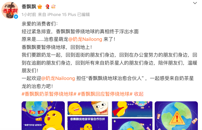 9月13日,香飘飘官方微博发布紧急公告:“香飘飘暂停绕地球。” ![]() 香飘飘称,自香飘飘品牌创立以来,“杯子连起来可绕地球 N圈”的话题始终伴随我们成长,这不仅是大家对香飘飘产品的喜爱与认可,更成为我们与消费者之间心照不宣的温暖默契。然而,截至今日2025年9月13日,“香飘飘绕地球”因突发不明原因暂停,目前正紧急排查具体情况。 针对此次异常情况,公司第一时间成立专项排查小组,将以最快速度定位问题核心,并及时向公众同步进展。 同时,香飘飘做出几点重要说明:产品生产、配送及售后均正常,不影响购买;排查进展将第一时间通过官方渠道公布,敬请关注后续公告。 香飘飘表示,“绕地球”是香飘飘与大家共同创造的品牌记忆,这份信任与陪伴,我们始终珍视。此次突发状况虽意外,但也让我们看到大家对香飘飘的关注与支持,请大家稍安勿躁,更多真相,敬请关注香飘飘后续公告。 ![]() 对此,网友表示看不懂:“啥情况?”更多网友纷纷在评论区表示不解:“这是在搞抽象吗?” 正当该消息在网上猛烈发酵时,13日晚间,香飘飘再次通过官方微博发文称,经过紧急排查,香飘飘暂停绕地球的真相终于浮出水面。 原来是……治愈星萌龙奶龙Nailoong来了!香飘飘要暂停绕地球,回到地上! 香飘飘表示:“我们要跟奶龙一起,回到逛街的朋友们身边,回到在办公室努力的朋友们身边,回到在追剧的朋友们身边,回到所有来自奶茶星人的朋友们身边,陪伴朋友们,温暖朋友们!” 香飘飘称,一起欢迎奶龙Nailoong担任“香飘飘绕地球治愈合伙人”,一起感受来自奶茶星龙的治愈力吧! ![]() 对此,有网友评论:“好颠的精神状态。”而更多的网友也纷纷醒悟过来,表示:“香飘飘落地找奶龙合伙,这波治愈我先冲了。”“奶龙给我香迷糊了!”还有网友表示:“神经啊!哈哈哈哈哈,以为要绕太阳了!” 然而,与这波“精彩的营销”形成鲜明对比的是,曾经的“中国奶茶第一股”香飘飘正深陷业绩泥潭,从“年销3亿杯” 的巅峰到如今的半年度巨亏。 从近年来财报数据看,香飘飘自2017年上市后业绩稳步攀升,但2020年净利润达到3.58亿元的历史高位后,业绩开始掉头向下。 2025年半年报数据显示,该公司报告期内营业收入为10.35亿元,同比下降12.21%;归属于上市公司股东的净利润为-9739.09万元,同比增亏。 香飘飘上半年冲泡类产品销售收入同比减少31.04%至4.23亿元,即饮类产品销售收入则同比增长8.03%至5.91亿元。 香飘飘解释称,现阶段,公司主要营收来源为冲泡奶茶,即冲即饮的特性决定了其热饮属性,在冬季可作为御寒、补充体力的休闲饮品,受到消费者的广泛喜爱;夏季,该类产品冲泡、冷却过程较为繁琐,因此销量较少。通常情况下,冲泡奶茶的销售在第二、第三季度进入淡季,在第四季度至次年第一季度迎来销售旺季。由于淡季持续时间较长,公司在市场营销、生产规划、人员招聘和管理等方面,面临较大挑战。 从成本端来看,香飘飘上半年研发费用同比增长49.11%至2789.71万元,销售费用同比减少1.41%至3.31亿元。 需注意的是,上半年,香飘飘经销商增加144个,减少236个,净减少92个。香飘飘称,报告期内,公司依据渠道管理策略要求,持续优化调整经销商的数量和结构,经销商总体上保持稳定。 公开资料,香飘飘于2017年在上交所上市,冲泡产品板块主要包含“香飘飘”经典系列、好料系列及其他系列等,即饮业务板块主要包括“Meco”杯装果茶、“兰芳园”港式茶饮、“香飘飘”即饮牛乳茶等产品。 (文章来源:深圳商报·读创) |