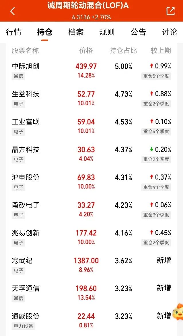 在算力板块的持续飙涨行情中,部分绩优基金或开始悄然撤退。 从部分重仓算力概念股的基金看,近期,部分基金实际净值与估算净值情况出现了大幅偏离。从近期机构调研情况来看,近一个月机构调研次数超过5万次,半导体、医疗器械行业公司受宠。 多只基金净值异动 多只前期净值飙涨的基金,近期的估算净值和实际净值出现了大幅偏离。 以永赢科技智选混合基金为例,截至今年二季度末,其重仓持有新易盛、中际旭创、天孚通信、胜宏科技等光模块、PCB龙头。9月11日,新易盛、中际旭创、天孚通信、胜宏科技、源杰科技等重仓股的涨幅均超过13%,涨幅最小的重仓股长芯博创也上涨了8.14%,但该基金当日净值上涨6.15%,与估算净值涨幅产生较大偏差。 ![]() 此外,9月12日,新易盛、中际旭创、天孚通信等股价遭遇调整,永赢科技智选混合基金估算净值下跌超2%,该基金当日净值下跌0.26%。 9月12日,永赢科技智选混合基金经理任桀在第三方基金代销平台公开表示,近几日,海外算力板块在经历较大波动后逐步回暖。此前,在市场活跃度大幅提升后,板块进入震荡期。对此,在组合管理上进行了一定应对。 类似的还有中信保诚周期轮动混合基金,其调仓迹象更为明显。 按照该基金定期报告,截至今年二季度末,在其前十大重仓股中,9月11日有多只涨停,但该基金当日净值涨幅只有2.7%。 ![]() 此外,9月8日,该基金重仓持有的天孚通信、中际旭创等算力板块剧烈调整,电池板块强势反弹,中信保诚周期轮动混合基金当日净值上涨1.74%。 类似的还有华商元亨混合基金,从近期净值表现看,或也对持仓进行了调整。 具体来看,截至二季度末,华商元亨混合基金重仓持有中际旭创、新易盛、胜宏科技、天孚通信等,9月11日,该基金净值涨幅为4.5%,同样低于估算净值涨幅。 ![]() 机构密集调研寻机会 从最新动向看,机构正在加紧调研寻找投资机会。 据Choice统计,截至9月13日,近一个月机构调研频次达50034次。从机构调研方向来看,半导体、医疗器械行业的机构调研次数均在3000次以上。此外,通用设备、计算机软件、汽车、专用设备、电子设备制造等行业的机构调研频次也均超过2500次。 ![]() 值得注意的是,多位知名基金经理现身上市公司调研名单。8月27日至8月28日,高毅资产孙庆瑞,睿远基金傅鹏博、赵枫、朱璘,嘉实基金王贵重、归凯等调研了立讯精密。8月21日,富国基金林庆、诺德基金罗世锋、南方基金张延闽等调研了德赛西威。8月20日,华安基金刘畅畅、舒灏、杨明等组团调研了广电计量。 通过近期的密集调研,多位基金经理发现了新的投资机会。“8月是上市公司半年报密集披露期,机构调研频率明显加大。加上近期市场走强,调研不仅是为了跟踪重仓标的表现,也是为了挖掘新的机会。”沪上某成长风格基金经理透露,近期一直在外地出差,主要对产业链上下游进行了详细调研,储备了一些优质标的,为后续调仓换股做准备。 谈及对算力板块的看法,汇丰晋信基金经理陈平公开表示,算力当前确实供需紧张,因而产业链上的公司总体都是高净利率高ROE的状态。长期来看万物皆周期这句话是对的。就长期而言,高净利率和高ROE都该回归,就跟当年某些新能源细分领域(如逆变器)一样。但周期有多长,要用多长时间回归,则需要具体产业具体考虑。科技类资产尽管近期涨幅较大,但AI带领着的科技基本面向好,同时核心的AI资产总体估值不高,且科技里还有很多资产没怎么涨,比如算力之外的半导体以及跟算力不相关的消费电子,而这些资产的基本面预期也是向好的,仍然看好未来的科技行情。 富国基金经理罗擎发表观点称,AI在日常工作、生活中渗透率在不断提高,模型能力上限仍在继续提升。进行AI投资须从产业视角出发,不仅是海外算力产业链,国内算力同样不容忽视。除光模块、PCB(印制电路板)、服务器外,AI应用也值得关注。 (文章来源:上海证券报) |
