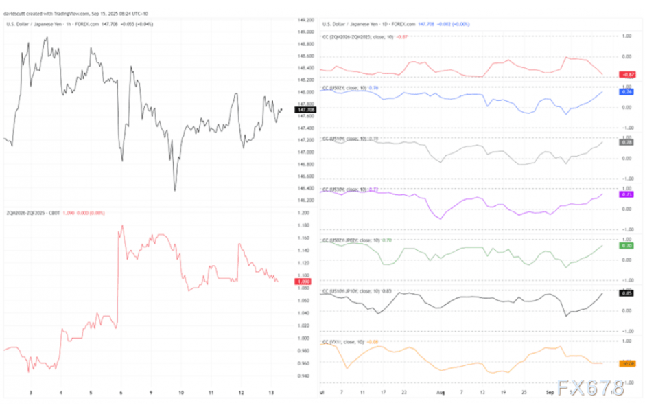 美元兑日元本周在区间内交投但处于微妙平衡 央行政策风险将成为下一阶段走势的决定性因素 相关性分析显示该货币对几乎完全跟随美联储政策预期波动 凸显美国利率预期的主导地位 而风险情绪影响微乎其微 周一 9月15日 ...