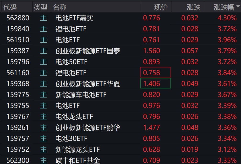 每经记者|叶峰 每经编辑|肖芮冬 新能源概念股早盘拉升,天赐材料涨停,宁德时代涨超7%,阳光电源涨超6%。 受盘面影响,多只新能源、电池相关ETF涨超3%。 消息面上,9月12日,工业和信息化部等 ...