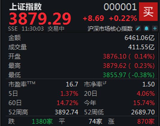 每经记者|刘明涛 每经编辑|赵云 9月15日,大盘高开后走势分化,创业板指盘中站上3100点。截至上午收盘,上证指数涨0.22%报3879.29点,深证成指涨1.07%,创业板指涨2.13%,北证50涨1.18%,科创50 ...