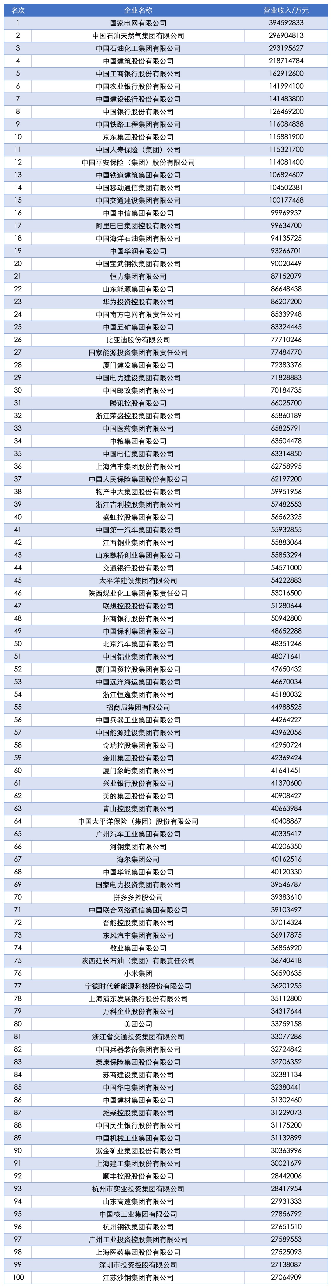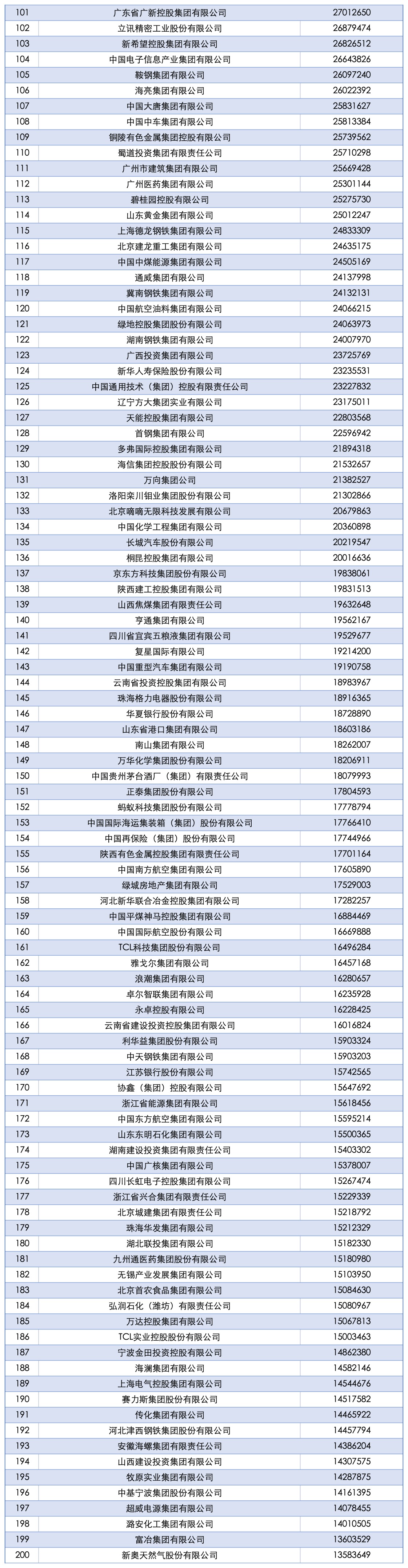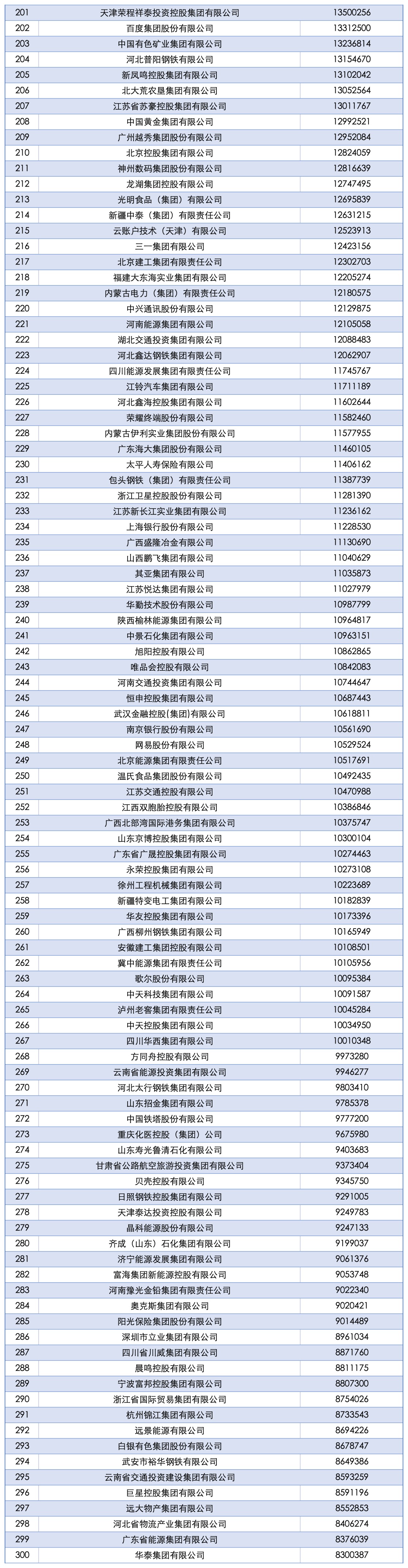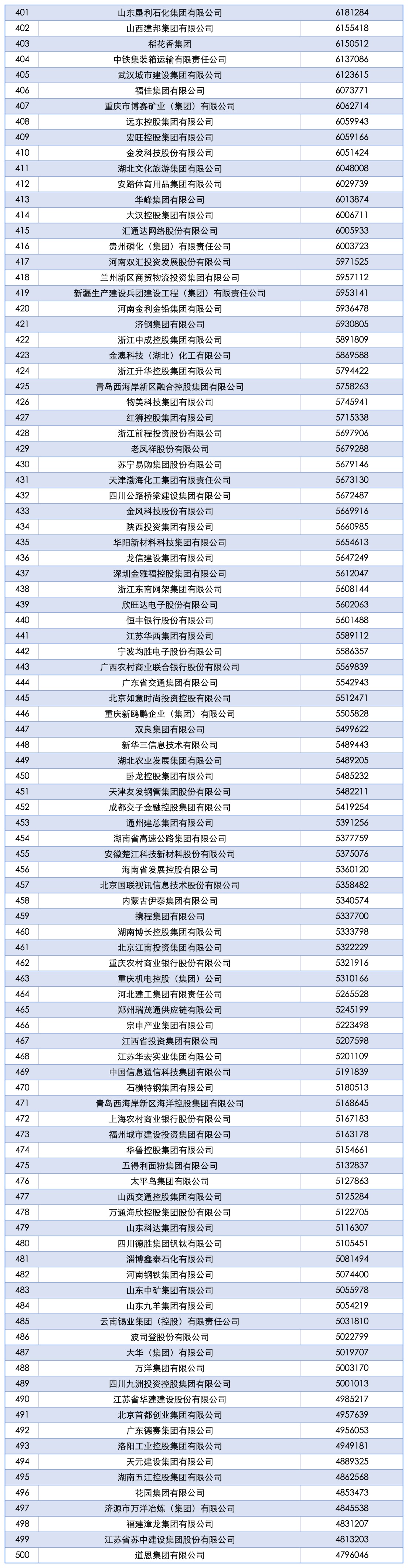 9月15日,中国企业联合会、中国企业家协会连续第24次向社会发布了“中国企业500强” (以下简称“企业500强”)榜单。这份榜单以2024年企业营业收入作为入围标准,呈现出以下主要特点。 规模总量保持增长。企业500强营业收入达110.15万亿元,较上年500强有所增加。入围门槛实现23连升,达479.60亿元,提升5.79亿元。资产总额为460.85万亿元,增长7.46%。榜单中,千亿规模企业数量增至267家,比上年增加45家,有15家企业的营业收入超过万亿元。其中,国家电网营业收入超过3万亿元,即将突破4万亿元;中国石油、中国石化、中国建筑的营业收入超过2万亿元。 经济效益继续改善。企业500强实现归属母公司所有者净利润总额为4.71万亿元,增长4.39%,收入净利润率为4.27%,提高0.17个百分点。 创新活力更加充沛。研发强度创新高。企业500强共投入研发费用1.73万亿元;研发强度创下1.95%的新高,连续8年提升。创新成果产出质量继续提升,企业500强持有有效专利总数224.37万件,比上年增加21.40万件,增长10.54%。其中持有发明专利103.96万件,较上年企业500强增加15万件,增长了16.86%,发明专利数量连续6年保持增长。发明专利占全部专利的46.33%,比上年提高2.50个百分点,专利质量稳步提升。 产业结构持续优化。先进制造业和现代服务业企业入围数量增加。企业500强有39家新入围或重新入围企业,其中汽车及零部件制造、物流及供应链企业增加最多,共有6家新入围企业。计算机通信设备及其他电子设备制造业、电信及互联网信息服务等行业多项指标领先,在研发费用、专利、标准等方面贡献突出。 发展协调性有所增强。制造业、服务业和其他行业企业发展齐头并进。企业500强中,制造业、服务业和其他行业对营收总额增长的贡献分别为40.48%、40.29%和19.23%。 会上,同时发布了“2025中国跨国公司100大及跨国指数”、 “2025中国战略性新兴产业领军企业100强”、“2025中国大企业创新100强” 等各项榜单。 “2025中国企业500强”榜单: ![]() ![]() ![]() ![]() ![]() (文章来源:人民日报) |