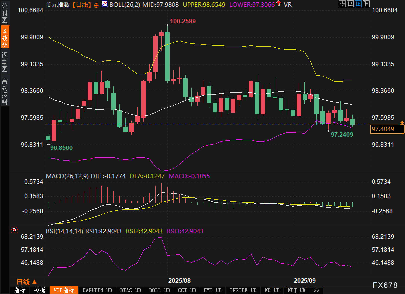 周一 9月15日 美元指数 DXY 美市盘前延续窄幅振荡 围绕97 40一线反复 仍处9月5日非农公布以来的区间 约97 30—98 25 内部 自8月22日杰克逊霍尔讲话后 DXY整体在一个倾斜下行通道内运行 当前短期指引较少 本周 ...