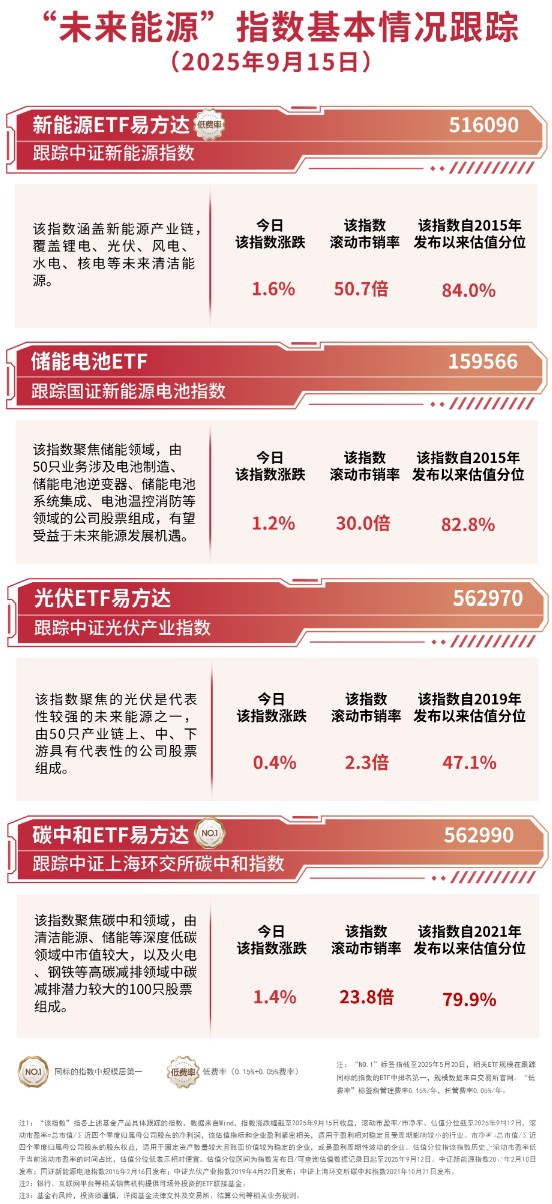 截至收盘,中证新能源指数上涨1.6%,中证上海环交所碳中和指数上涨1.4%,国证新能源电池指数上涨1.2%,中证光伏产业指数上涨0.4%,储能电池ETF(159566)全天获6100万份净申购。截至上周五,该产品九月以来持续“吸 ...