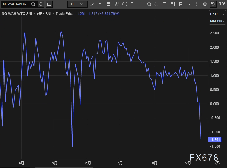 周一 9月15日 瓦哈枢纽现货天然气价格再度 跌穿地板 盘面直落至 1 261美元 百万英热单位 mmBtu 从上周五约0 06美元急转负值 单日跌幅超过2350 刷新近17周低位 负价的直接诱因仍是秋季管道检修与输送受限 使得盆 ...