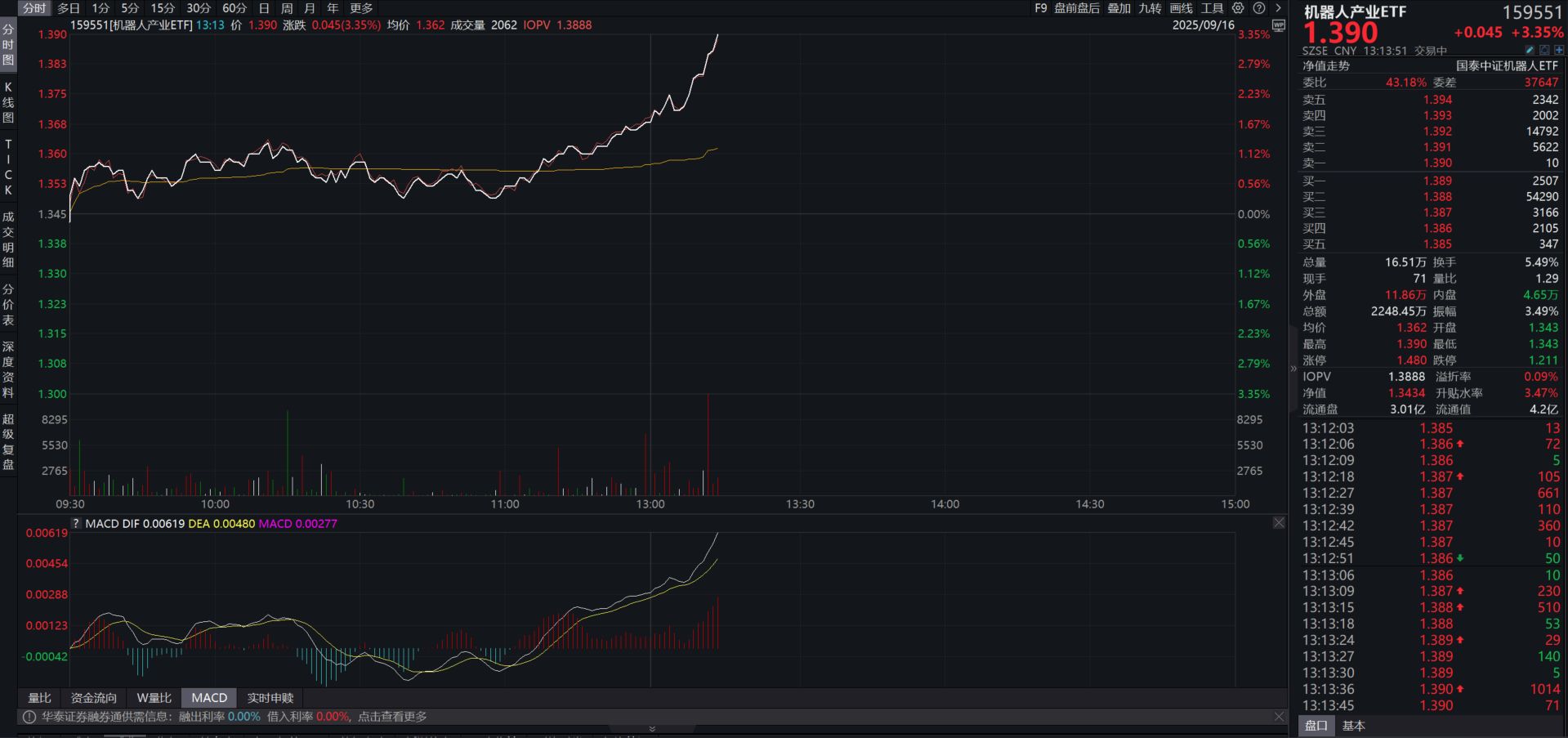 每经编辑|肖芮冬 近日,特斯拉董事会向马斯克提出价值1万亿美元的10年激励计划,要求达成交付100万台Optimus机器人等目标。特斯拉利好频频,机器人产业板块午后爆发,相关产品机器人产业ETF(159551)盘中涨超3%,值得关注。 马斯克增持10亿美元,第三代Optimus定型渐行渐近 9月15日,美国证券交易委员会的文件显示,马斯克近期增持257万特斯拉股票,每股价格在372.37美元~396.54美元,总金额约10亿美元。 9月5日,特斯拉董事会向马斯克提出价值1万亿美元的10年激励计划,要求达成交付100万台Optimus机器人等目标,将于11月股东大会进行表决。特斯拉利好频频,第三代Optimus定型渐行渐近,后续订单落地的消息有望给板块带来持续的催化。 相关机构表示,此次马斯克增持动作与此前其新的薪酬包遥相呼应,或进一步明确其将业务重心转回FSD、Robotaxi、Optimus等核心业务。展望后续,预计四季度板块有望迎来beta行情,海外特斯拉Optimus第三代有望发布,国内宇树科技有望于年底上市,技术迭代、量产节奏、资本运作等消息将对板块带来持续的催化。 国产工业机器人基本面回升,关注机器人产业ETF(159551)机会 工业机器人领域,经过近两年的库存消化期后,2025年上半年市场也呈现阶段性回暖态势。2025年7月我国工业机器人产量为6.4万台,同比增长24%;2025年1~7月我国工业机器人累计产量为44.7万台,同比增长33%。从长期视角来看,随着算法的优化与数据的积累,未来工业机器人市场的重心也将逐渐向智能机器人倾斜,进一步提升机器人在复杂应用场景中的渗透率。 展望后续,特斯拉人形机器人第三代新品有望发布、2026年量产指引值得关注。国产链下半年资本运作、订单出货等消息将不断催化。人形机器人涵盖范围较广,板块内部题材轮动也相对较快,因此通过投资机器人产业相关ETF分散风险、捕捉板块机会,或将是不错的选择。机器人产业ETF(159551)兼顾人形机器人海外链和国产链相关标的;工业母机ETF(159667)则涵盖人形机器人所需零部件及生产设备相关标的,感兴趣的投资者可适当布局。 |
