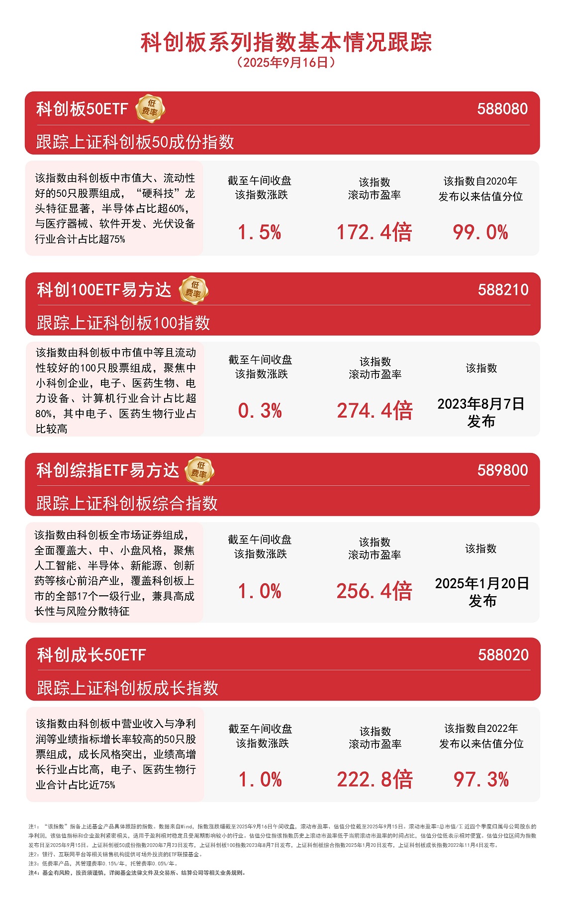 今日早盘芯片、元件等硬件股走强,带动相关指数上涨,截至午间收盘,上证科创板50成份指数上涨1.5%,上证科创板成长指数、科创综指均上涨1.0%,科创100指数上涨0.3%。 |