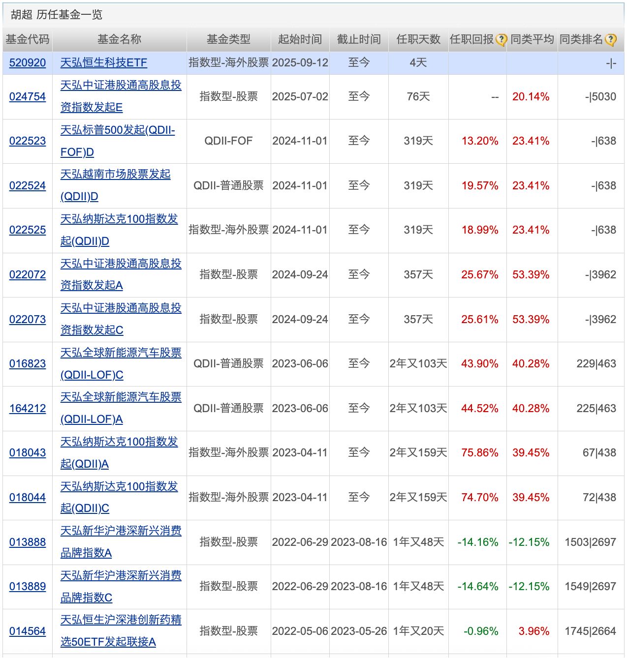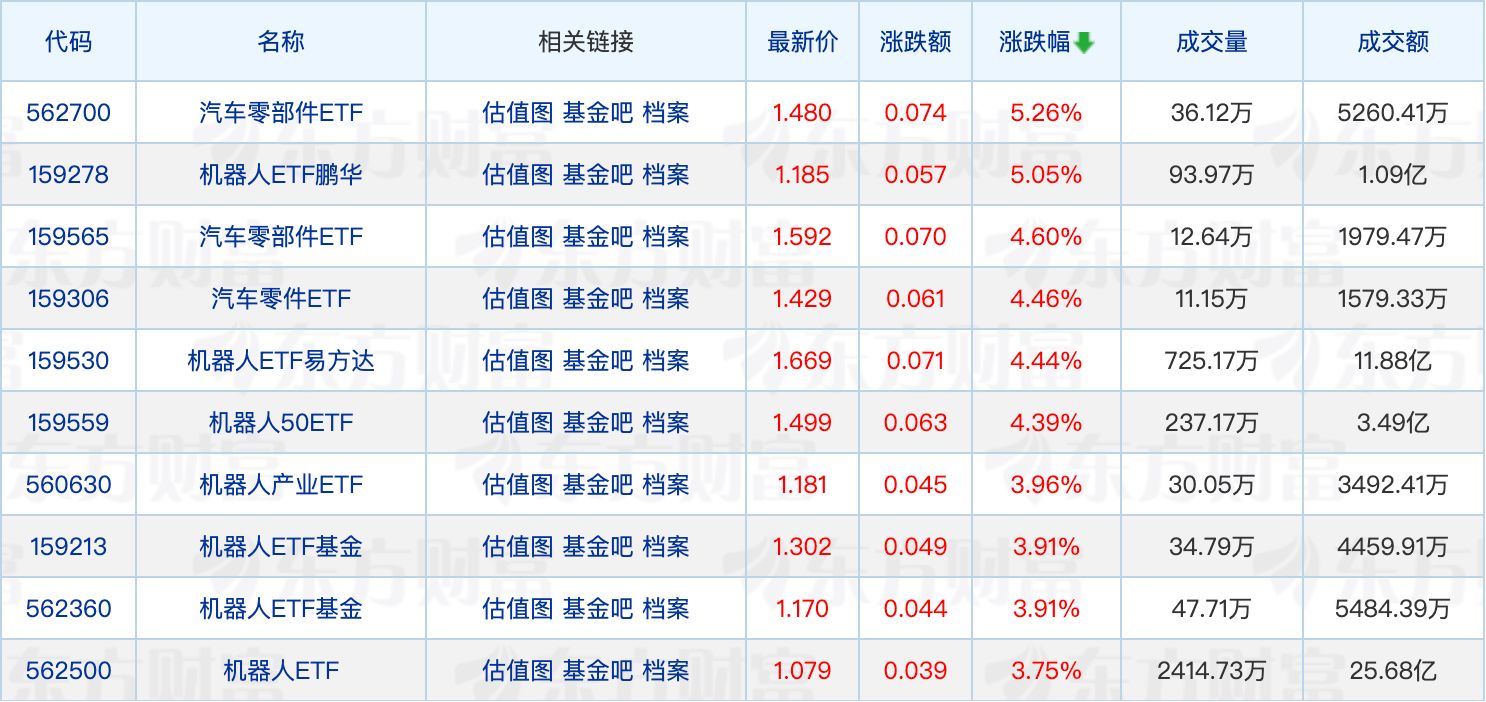 每经记者|肖芮冬 每经编辑|叶峰 天赐良基日报第730期一、今日基金新闻速览1、多只化工主题基金密集申报 伴随“反内卷”行情发酵,基金公司也在加大化工主题基金的布局力度。根据Wind统计,行政审批信息明细表显示,9月份以来有4只化工主题基金上报,主动权益基金和ETF各有2只。 2、近一年国内ETF规模增幅近50% 公募排排网数据显示,截至9月14日,当前ETF基金总数达到1293只,总份额达到2.76万亿份,总资产净值5.24万亿元。值得关注的是,与2024年9月相比,近一年ETF总资产净值增幅达到49.71%。 3、西藏东财基金正式更名为东财基金 9月16日,原西藏东财基金发布了一则关于公司法定名称变更的公告,该公司法定名称正式由“西藏东财基金管理有限公司”变更为“东财基金管理有限公司”。公司章程相关条款已相应修改,并且已完成工商变更登记手续,后续将对旗下公募基金产品名称进行相应变更。 二、知名基金经理最新动态1、刘霄汉管理的一只基金限大额申购 9月16日,民生加银基金公告,自9月17日起,暂停民生加银创新成长混合基金大额申购、大额转换转入、大额定期定额投资业务。暂停大额交易业务期间,单日单个基金账户累计申购(含定期定额申购及转换转入)基金的金额不应超过50万元。上述规则针对基金A类、C类份额合并计算进行限制。 据了解,该基金由刘霄汉管理。天天基金网数据显示,基金A类份额今年以来上涨54.80%,C类份额上涨54.36%,业绩表现均位于同类产品前列。 三、今日ETF行情点评1、ETF行情复盘 今日市场震荡走高,截至收盘,沪指跌0.04%,深成指涨0.45%,创业板指涨0.68%。沪深两市成交额2.34万亿元,较上一个交易日放量640亿元。板块方面,电机、汽车零部件、房地产服务等板块涨幅居前,而小金属、保险、农牧饲渔等板块回调居前。 具体来看,汽车零部件ETF集体走强,最高涨5.26%;此外,机器人板块强势领涨,板块内超20只个股涨停,机器人ETF也有所表现。 下跌方面,港股创新药ETF领跌2.31%,稀有金属ETF集体回调。 2、ETF主题机会 人形机器人产业链进入“百花齐放,百家争鸣”阶段,目前人形机器人进入工业场景,已经成为国内外确定性较高的应用趋势,人形机器人商业化落地可期。可关注机器人ETF等产品。 四、明日重点关注新发基金1、基金简称:天弘恒生科技ETF 基金类型:股票型证券投资基金、QDII 基金经理:LIU DONG(刘冬)、胡超 业绩比较基准:即恒生科技指数收益率(经估值汇率调整) 基金经理过往业绩: 封面图片来源:图片来源:每日经济新闻 杨乐 摄 |
