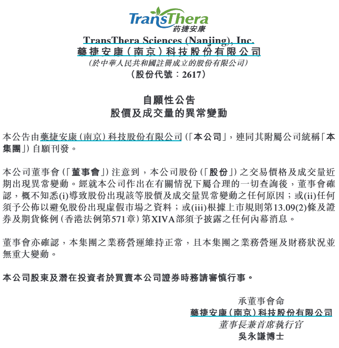 9月16日,港股生物医药板块上演了惊心动魄的“过山车”行情。大牛股药捷安康-B(02617.HK)在早盘一度冲高至679.5港元/股,大涨63.73%,市值一度逼近2700亿港元。但午后股价断崖式跳水,最低触及165港元/股,日内最大跌幅超过75%,市值跌至不到700亿港元,以最高点计算,股价单日大跌514.5港元,一手500股亏损超25万港元。截至收盘,股价虽略有回升至192港元/股,但仍较前一日大跌53.73%。 消息面上,药捷安康今日午间发布称公告,注意到公司股票交易价格及成交量近期出现异常变动。董事会确认,概不知悉导致股份出现该等股价及成交量异常变动之任何原因;或任何须予公布以避免股份出现虚假市场之资料;或根据上市规则须予披露之任何内幕消息。董事会亦确认,本集团之业务营运维持正常,且本集团之业务营运及财务状况并无重大变动。 ![]() 公开资料显示,药捷安康成立于2014年,是一家以临床需求为导向、处于注册阶段的生物制药公司,专注于发现及开发肿瘤、炎症及心血管疾病小分子创新疗法。公司今年6月23日登陆港交所,IPO发行价格为13.15港元/股;上市后股价呈震荡上行态势,尤其9月10日后大幅增长,9月16日盘中触及679.5港元/股最高价。以发行价计算,上市不满三个月的药捷安康,股价最高涨超50倍。 本轮行情起点始于9月10日,当日公司宣布其核心产品替恩戈替尼(Tinengotinib,TT-00420)一项临床试验获得临床默示许可的公告。资料显示,该产品是世界首个且唯一已进入注册临床阶段治疗FGFR抑制剂复发或难治性胆管癌(CCA)患者的研究药物,它还是全球首个和唯一一个可能同时抑制FGFR/JAK通路,且针对mCRPC有临床疗效证据的研究药物。 而相关公告发布后的三个交易日内,药捷安康股价累计飙升361.11%,其中,9月12日大涨77.09%,9月15日涨幅更是高达115.58%。 股价大涨的另一推手或为港股通纳入效应。9月8日,港股通标的名单调整正式生效,新纳入映恩生物-B、药捷安康-B、碧桂园、正力新能等20只股票,剔除西锐、宜搜科技、知行科技、美中嘉和等20只股票。其中,药捷安康-B和映恩生物-B两只次新股均出现股价大涨。 CIC灼识咨询创始合伙人侯绪超向21 财经·南财快讯记者表示,港股上市公司被纳入港股通后,内地投资者可直接参与投资,客观上有助于提升股票的成交量和市场活跃度。但本轮药捷安康股价的波动,却属于游资趁公司正式纳入港股通之际,借利好消息炒作。侯绪超表示,从外部了解的信息看,药捷安康研发进度和公司运营均正常有序,但是目前公司股价已完全脱离基本面。对于被游资爆炒爆拉的个股,应尽快远离。 事实上,股价的疯狂已与药捷安康的基本面形成鲜明反差。作为一家处于临床阶段的Biotech公司,药捷安康尽管核心产品研发成果显著,但目前尚未实现商业化盈利。 财报显示,药捷安康在2022年、2023年、2024年分别亏损2.52亿元、3.43亿元、2.75亿元,三年累计亏损达8.7亿元。2025年上半年仍延续亏损态势,营收仅为98.6万元,同比大跌90.4%,税前亏损1.23亿元。截至2025年6月30日,公司的现金及现金等价物仅有4.49亿元。而上半年的研发成本为0.98亿元,管理成本为2747万元,公司资金链正面临考验。 (文章来源:21世纪经济报道) |