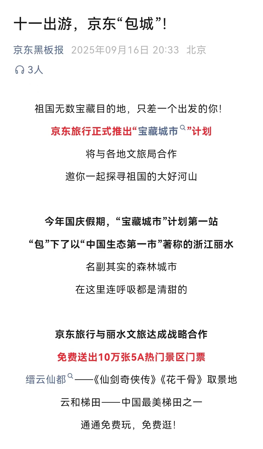 9月16日,京东集团创始人、董事局主席刘强东现身“京东品酒会”直播间,重启“用户见面会”,现场烹制宿迁名菜“黄狗猪头肉”。 刘强东说他第一次直播很紧张,称“像贾国龙先生第一次炒菜一样紧张,像罗永浩第一次说脱口秀一样紧张。”提到做菜方面,刘强东表示只要回家,基本上天天都会给家人做饭。 ![]() 图片来源:视频截图 刘强东现身线上直播后,京东旅行直播间场观数瞬间飙升至百万。 ![]() 图片来源:视频截图 据媒体报道,刘强东在京东酒品会上表示,民营企业之间要简单、实在点,可以多见面聊聊。“我坚持认为,所有企业在该竞争的时候要竞争,但更多是依靠商业模式、价值创造、信誉等方面,来最终赢得消费者。但是我认为,企业家不应该变成仇人。不要把正常的商业竞争变成个人恩怨。这没必要。” 刘强东还谈到“反内卷”,他表示,现在国家强调“反内卷”,加大整治“内卷式”竞争力度是非常对的。“有两种卷法:一种是往下卷,往低端卷,让整个产业链的人没有好待遇,这种卷要大力反对;另一种是向上卷,要卷质量好、价格公道、更加安全,希望我们国家支持某些行业往上卷。”他提到,期待通过在外卖和酒旅市场的创新,真正解决从业者、消费者、平台方之间的利益分配平衡问题。尤其平台型企业需要自我克制,不能卷走产业链中的绝大部分利润,而是应该形成共赢。 刘强东谈及创业,他回忆道,他在创业初期,带着1.2万元在电脑城摆柜台,主要做电脑和多媒体配件生意。当时他明显发现,电脑城的商业模式并不透明,存在种种乱象。但在2004年,看到全新商业模式后,他决定要参与替代传统电脑城的这种新模式中。也即所有产品明码标价、全国统一定价,所有销售产品开发票,只卖正品好货。 据证券时报,“后续将公布全新的酒店发展计划。”刘强东在京东品酒会上还透露,不想把酒店再拉进价格战,让酒店从业者将价格进一步降低,最后卷到服务品质下降,利润空间受到挤压,整个生态受到破坏。 9月16日晚间,据京东黑板报消息,国庆假期在即,京东旅行宣布正式启动“宝藏城市”计划,定期与全国各地文旅局开展深度战略合作。京东旅行相关负责人表示:“我们希望把京东最有优势的供应链与各地文旅产业深度融合,创新文旅消费场景,优化旅游消费体验,为地方经济发展注入新活力。” ![]() 图片来源:京东黑板报 消息称,“宝藏城市”计划首站,选在被誉为“中国生态第一市”的浙江丽水。以此为契机,京东旅行与丽水文旅达成战略合作,今年国庆假期,免费送出10万张5A级景区门票。京东旅行“宝藏城市”计划的开启,标志着其从一站式购票平台向深度旅行服务生态的又一次升级。 此前的9月9日,京东与锦江酒店签署战略合作协议,双方将围绕餐饮消费场景创新、酒旅服务、供应链协同三大领域全面深化合作。据京东方面表示,在创新餐饮消费场景方面,京东旗下七鲜小厨将进驻锦江酒店(中国区)旗下多元品牌酒店,探索“AI+吃+住”的全新商业模式,满足差旅客群用餐需求,并拓展外卖服务。双方将通过酒店和餐饮供应链的融合,创造全新的消费场景和增量。 8月14日,京东集团发布了2025年二季度业绩。收入继续保持加速增长态势,核心零售业务持续加速增长,市场优势地位进一步巩固,新业务健康发展并已达成初期战略目标。二季度,京东集团收入为3567亿元人民币(约498亿美元),同比增长22.4%,远超市场预期,再次刷新近三年来同比增速的纪录。 (文章来源:每日经济新闻) |