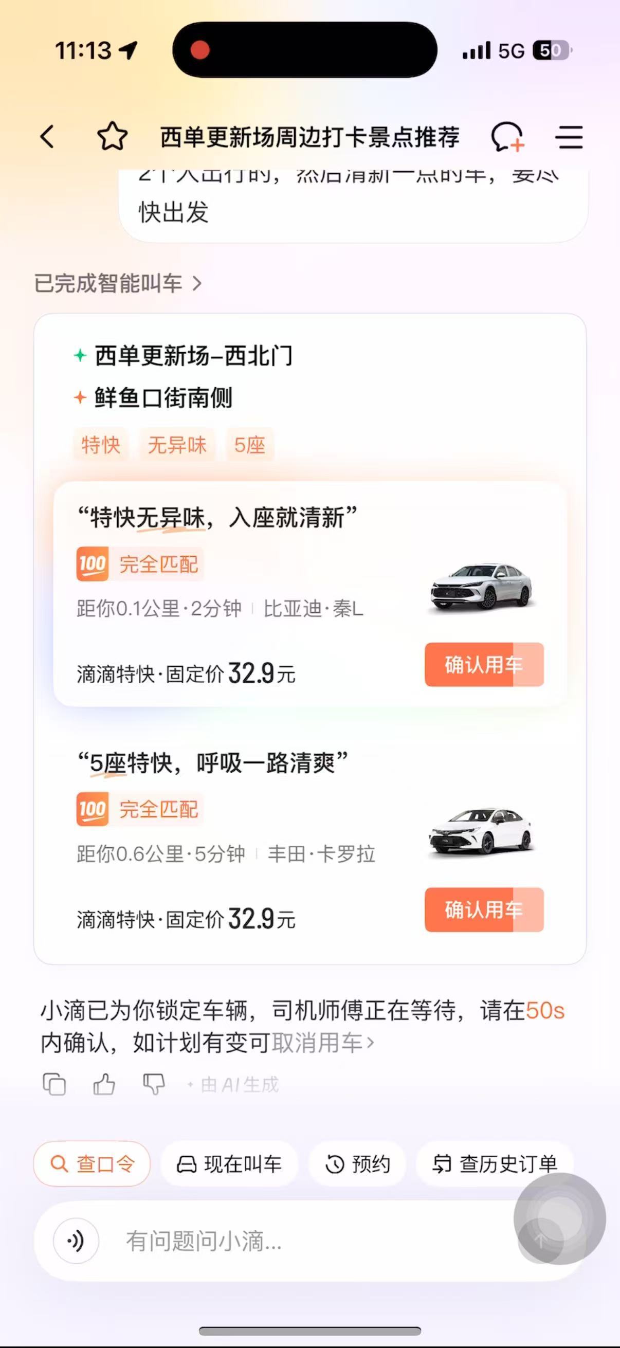 每经记者|赵雯琪 每经编辑|魏文艺 “我明天下午两点要去首都机场,帮我约一辆能坐4个人、宽敞一点的车。” 国庆长假首日,出行高峰如期而至。在此之前,不少出行平台都结合AI(人工智能)技术推出了全新的技术升级。面对复杂的出行需求,AI能成为靠谱的“出行搭子”吗?今天,我在出行高峰期体验了一把AI出行助手——滴滴出行在假期前三天刚刚开放公测的智能助手“小滴”。 与常规打车流程不同,在我提出了我的预约出行要求和用车场景后,“小滴”并未立即派单,而是经过约30秒的智能分析和数据处理后生成了一份完整的出行方案:建议下午2点左右出发,系统将在11:55起监控天气,13:55安排车辆,若空车紧张则会提前调度。 图片来源:滴滴出行 在另一次测试中,我尝试提出更模糊的需求:“我现在在西单,给我推荐附近适合旅游打卡的景点,并打一辆老司机开的,空气清新的车。”“小滴”随即推荐了距离西单约2公里的故宫博物院和前门等经典的北京打卡景点,并为我匹配了两款车型:一款是“特快无异味,距离0.1公里”的轿车,另一款是“距离0.6公里的5座特快,呼吸一路清爽”。 图片来源:滴滴出行 随机选择一辆车上车后,在与司机交流过程中我了解到,这位司机驾龄20年,确实是位老司机,车上淡淡的香薰味沁人心脾。接单的司机告诉我,通过AI出行助手派发的订单,在司机端与普通订单并无明显区别。不过,当他得知我是通过AI助手叫车时,也表现出浓厚兴趣:“听起来很智能,我自己都想试试。” 与普通打车需先选择“快车”“专车”等车型不同,使用“小滴”的起点是“描述需求”。乘客只需将出行目的、同行人员和对车辆的要求一次性告知AI出行助手,平台即可通过大模型与智能算法匹配用户需求的最多3个车辆选项,由乘客手动确认后通知司机接驾。 经过多次实测AI出行助手打车后我发现,“小滴”还能响应更多场景化指令。例如在雨天提前预约车辆,或明确表达“优先推荐新能源车”的偏好。这些细节表明,AI出行助手正尝试融合时间、天气、路况与个人偏好,从单一叫车工具向“出行规划大脑”演进。 值得注意的是,滴滴此次同步上线了面向开发者的MCP(模型上下文协议)服务。这意味着,其AI出行能力可以像乐高积木一样,被其他应用(如日历、航旅App)快速接入。未来用户或许不再需要打开出行App,就能在任何智能终端完成全流程的出行规划与车辆预约。 2025年,“人工智能+”行动被纳入国家战略,旅游与出行平台纷纷加速布局。不仅是滴滴,T3出行研发的AI打车技术于9月11日正式接入支付宝,成为后者首个网约车智能助手。高德则在国庆前联合中国安全生产科学研究院发布“鹰眼守护”预警系统,通过AI技术辅助实测重大异常事件预警准确率达90%。 尽管前景可期,但滴滴产品负责人也坦言,作为初生的AI“小朋友”,“小滴”仍需在真实出行场景中持续学习。随着大模型技术不断渗透,一场更人性化、更智能的出行变革,正在路上。 记者手记:技术正让冰冷的工具变得有温度 体验完AI出行助手,我最深的感触是:技术正让冰冷的工具变得有温度。当我说出“带两个大行李箱去机场”时,它不再只是匹配一辆车,而是开始思考“如何更好地完成这段行程”。这种从“执行指令”到“理解意图”的转变,正是AI带给出行最动人的改变。 作为一名时刻关注前沿科技的记者,我见证过太多停留在PPT上的“智能概念”。但今天,当AI开始理解“我想要一辆空气清新的车”这样充满生活气息的需求时,我真实地感受到:智能出行不再遥远,它正在成为触手可及的现实。 当然,这款AI助手仍显稚嫩,它的推荐未必每次都精准。但它的学习能力让人期待——我们每个人的每次使用、每次反馈,都在参与塑造未来出行的模样。 每一种新技术都会过时,但基于理解与共情创造的服务却历久弥新。从精确的“工具”到模糊的“伙伴”,AI在出行领域的这场初探,让我看到了一种更高效率、也更具温度的人机关系可能。我很庆幸,自己能作为一位普通的出行者,见证并记录下这个充满可能的、有温度的起点。 未来已来,值得期待。 免责声明:本文内容与数据仅供参考,不构成投资建议,使用前请核实。据此操作,风险自担。 封面图片来源:滴滴出行截图 |