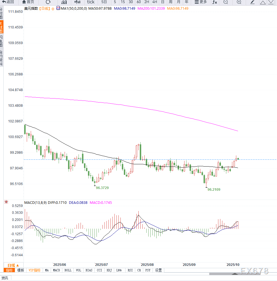 美元指数(DXY)在周四亚洲盘交易中小幅下跌至98.75附近,受美国政府停摆延长和经济前景担忧影响。 DXY衡量美元相对于六种主要货币的综合表现,其下行反映市场避险情绪的转变以及对美国经济短期压力的担忧。 ...