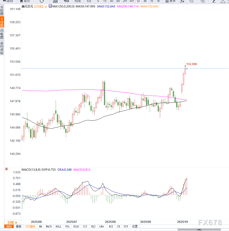 日元在周四亚洲交易时段表现稳健,推动USD/JPY小幅回落至152.60附近。 ![]() 投资者对日本财政政策的不确定性,使日元多头信心受限。此外,以色列与哈马斯就和平计划第一阶段达成协议,缓解全球地缘政治紧张情绪,也抑制了避险日元的升值空间。 日本物价持续保持在央行2%目标以上,经济连续五季度增长,使市场对今年再加息仍有预期。但随着首相人事及政策变化,10月30日下一次日本央行利率会议加息的概率已从上周五约60%降至26%。 美元方面,美联储9月会议纪要显示多数官员倾向降息,劳动力市场风险增加,但对降息次数存在分歧。CME FedWatch工具显示,市场对10月及12月各25个基点降息的可能性仍较高。 USD/JPY日线相对强弱指数接近超买区,短线限制新多头入场。若回调,152.00整数关口及前一晚低点151.70区域可吸引逢低买盘,支撑价格不跌破151.00强支撑。 上方阻力位为153.00整数及周三多月高点,若价格持续突破,可进一步上探153.70–153.75区域,最终目标指向154.00,为自2月12日以来首次挑战。 整体来看,USD/JPY短线仍呈多空博弈格局,回调提供低位买入机会,而突破关键阻力则确认多头延续。 ![]() : 日元短线受美元走弱及日本政策不确定性支撑,但财政扩张预期和避险需求下降可能抑制进一步升值。应关注日本央行政策、美元动态及全球地缘政治变化,以把握USD/JPY后续关键突破方向。关键阻力位突破才确认多头趋势延续。 ![]() |