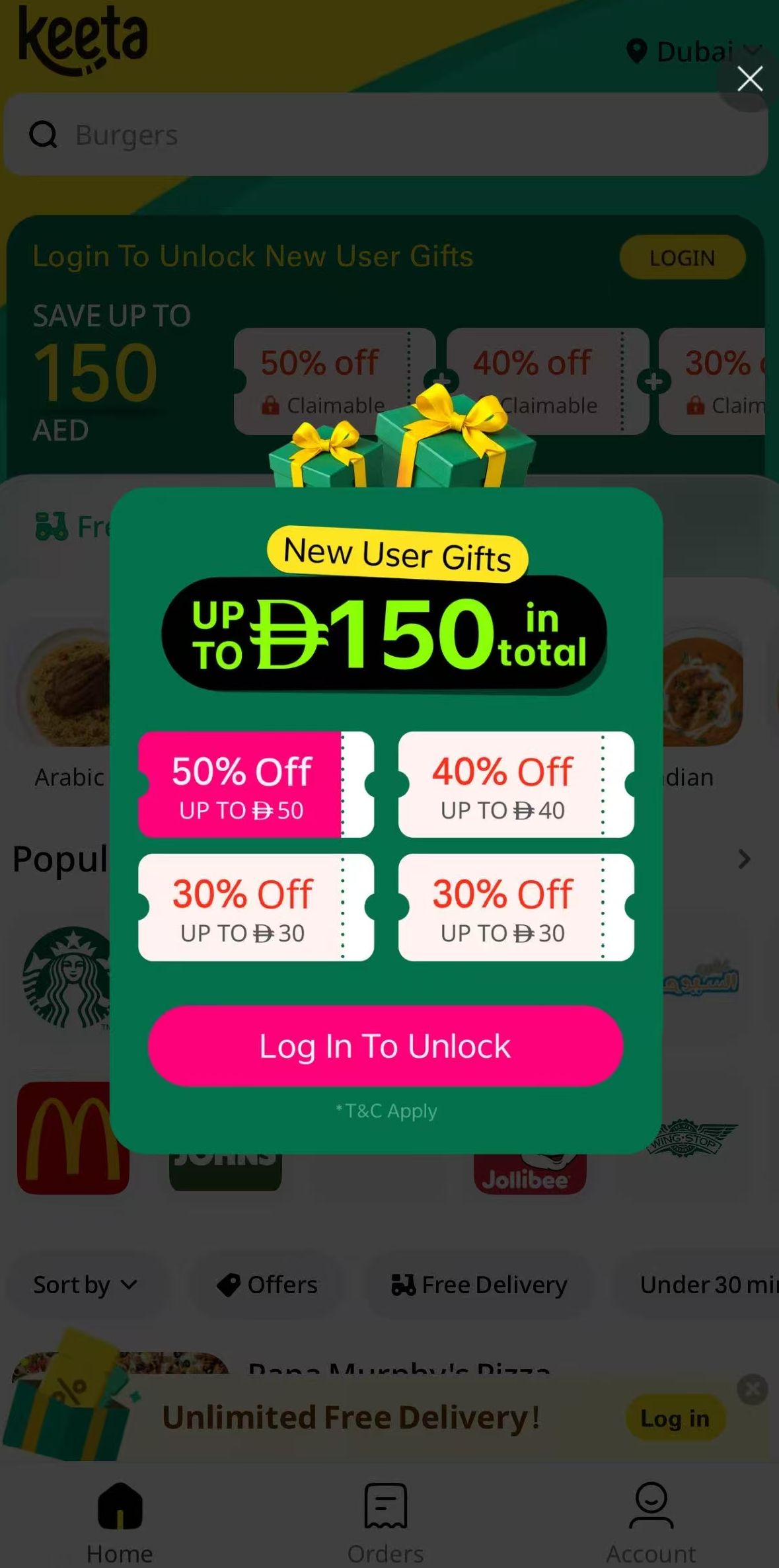 在上线初期,新用户注册Keeta还可以获得半价、六折优惠券,据Keeta宣传页面,最高优惠可达150迪拉姆(约合291.34元人民币)。