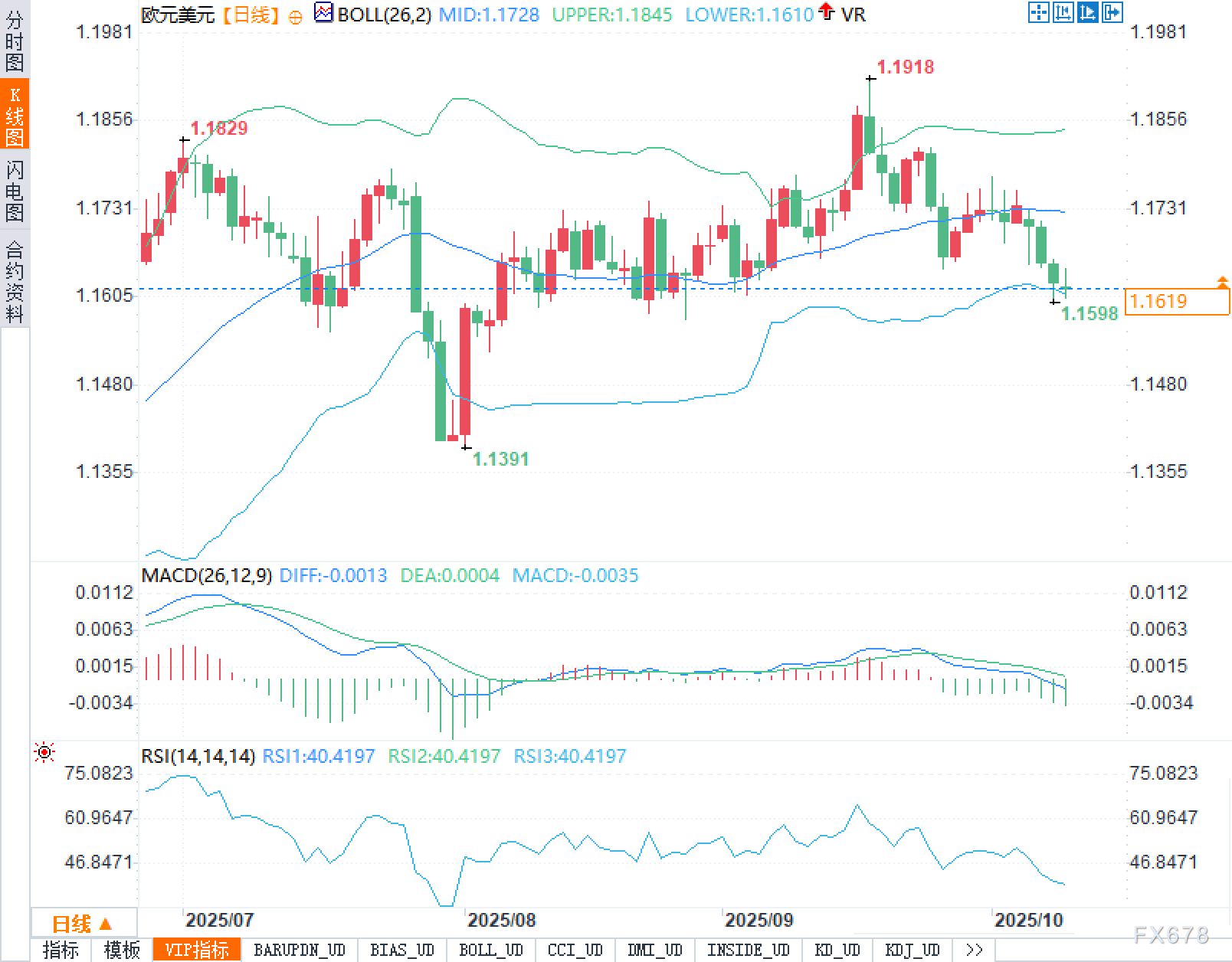 周四(10月9日)欧洲时段,欧元兑美元延续此前三日的弱势,现交投于1.16上方。汇价自周内高位回撤后持续承压,近端技术结构尚未出现反转信号,短线风险倾向仍偏向下行。基本面层面,美元在谨慎情绪中获支撑,欧元 ...