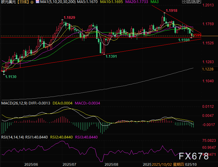 周四(10月9日)亚欧时段欧元兑美元(EUR/USD)走出了宽幅震荡的走势,目前交投于1.1600上方,守住了1.1600支撑位;此前在周四欧洲时段开盘时,该货币对在1.1650附近遇阻承压。受法国政治不确定性影响,投资者保持警惕,欧元的上行动能始终偏弱。 ![]() 美国方面,政府停摆已进入第八天,恢复资金拨款的谈判仍无进展;在关键经济数据暂停发布的背景下,来自美联储的消息成为当前核心基本面驱动因素。周四凌晨公布的美联储上次会议纪要显示,美联储在微调货币政策过程中面临显著挑战:就业市场呈现疲软态势,而通胀风险则偏向上行。 值得注意的是,据美国《财富》杂志10月7日报道,美国哈佛大学经济学家杰森·弗曼(JasonFurman)的一项研究发现,2025年上半年美国国内生产总值(GDP)增长几乎完全由数据中心和信息处理技术推动,在这些技术以外的其他领域,美国的增长率仅为0.1%。 弗曼在社交媒体上发布的研究数据显示,今年上半年,信息处理设备和软件的投资仅占到美国GDP的4%,但它们占到GDP增长的92%。上半年美国GDP平均增长1.6%,但如果剔除数据中心和信息处理技术等领域,美国GDP增长率仅为0.1%,几乎停滞不前。 周五凌晨,多位美联储官员将发表讲话,为美联储的货币政策规划提供更多线索。不过,在关键经济数据缺失的情况下,他们大概率不会改变市场现有共识——即美联储在今年剩余的货币政策会议中,仍将实施两次降息。 市场动态一揽:市场情绪好转为欧元提供喘息空间 周四,市场情绪略有回暖,为欧元带来一定喘息空间,但欧元的下行趋势并未扭转。法国总统马克龙预计将任命新总理,但新总理将面临与前五位总理相同的难题——解决该国的预算问题。 德国8月贸易顺差录得172亿欧元,高于7月的142亿欧元,超出市场预期。不过,此次顺差扩大主要源于进口额下降1.3%,这一降幅抵消了出口额0.5%的下滑(出口额已连续第二个月低于预期)。 此前在周三,德国已公布8月工业产出下降4.3%;此次贸易数据与工业产出数据共同印证了德国作为欧元区核心经济体经济增长动能疲软的现状,进一步对本就走弱的欧元形成压制。 美国方面,周四凌晨公布的美联储9月货币政策会议纪要显示,政策制定者在“需采取多大力度的宽松措施以支持经济增长且不推升通胀”这一问题上存在分歧。9月17日美联储发布的《经济预测摘要》中包含的点阵图显示,对于今年至少再降息两次的提议,投票结果为10票支持、9票反对。 地缘政治层面,以色列与哈马斯已达成停火协议,尽管这份协议看似稳定性不足,但截至目前,已为市场情绪改善起到了推动作用。 技术分析:欧元兑美元仍靠近1.1600支撑位 欧元兑美元的反弹走势持续遭遇抛售压力,空头趋势得以维持。此前的1.1650整数支撑位目前已转化为阻力位,限制欧元上行空间,而1.1600支撑位已近在咫尺,风险逐步升温。相对强弱指数(RSI)仍远低于50,显示空头压力显著。 欧元兑美元在1.1650关口遇阻,这一走势印证了空头仍主导市场;不过,1.1600附近的支撑位(或具备较强支撑力度。若该支撑位失守,下一目标将指向8月周三低点与趋势线支撑位重合处)22日和27日低点(近1.1575),再进一步则是8月5日低点1.1530——不过,从周三的走势来看,1.1530这一水平目前仍遥不可及。 欧元兑美元的即时阻力位位于1.1645-1.1650区间(9月25日和10月6日低点),突破该区间后将面临下行趋势线阻力(目前位于1.1690附近)。若突破这一趋势线阻力,或暗示趋势转向,届时市场焦点将转向上周高点1.1765-1.1775区间。 ![]() 北京时间18:30,欧元兑美元现报1.1623/24。 ![]() |