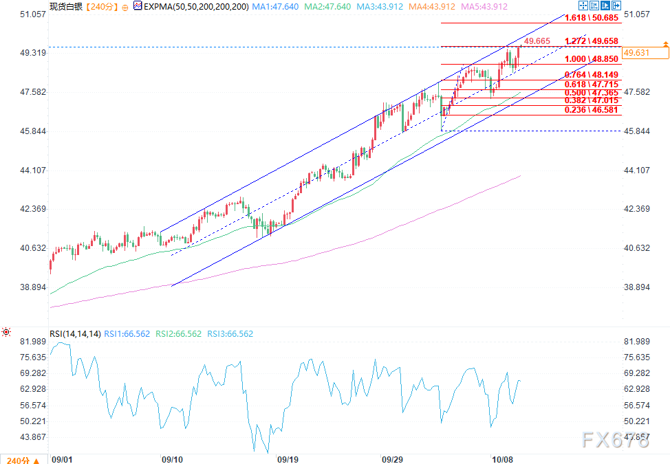 周四(10月9日)欧盘时段,白银价格在当日先波动震荡随后大幅上扬。尽管美元表现强劲,贵金属整体交投仍偏强。现货白银价格盘中报49.635美元/盎司,涨幅1.62%,离50.00美元的心理关口越来越近。 周四贵金属 ...