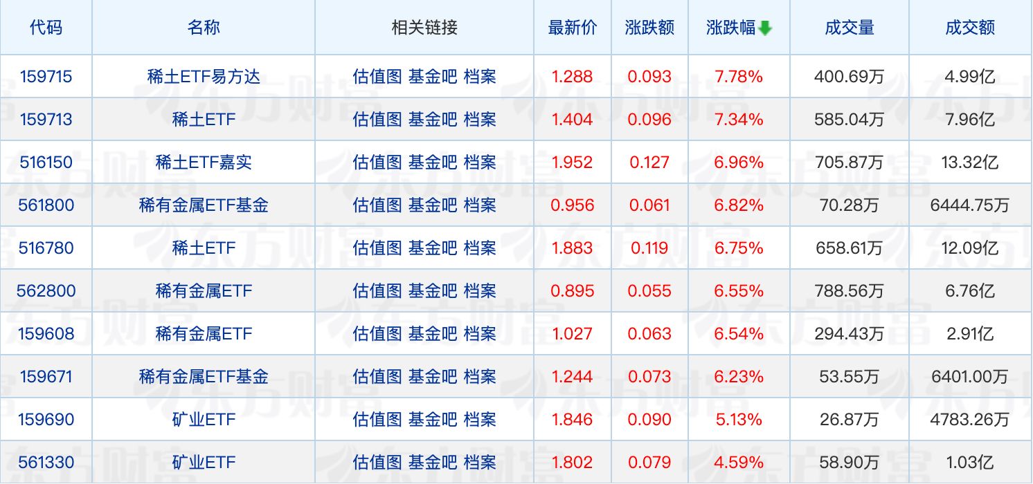 每经记者|肖芮冬 每经编辑|叶峰 天赐良基日报第743期一、今日基金新闻速览1、融通基金邹曦离任副总经理 近日,融通基金发布公告,邹曦因个人原因,于10月11日离任公司副总经理,且不转任公司其他岗位。公开资料显示,邹曦拥有24年证券、基金行业从业经历。他于2001年5月加入融通基金,曾任行业研究员、基金经理、研究部总经理、权益投资部总经理等职。 2、多只基金调整风险等级 上周,富国基金公告,自10月10日起对旗下31只基金产品的风险等级进行调整,其中28只产品风险等级上调,3只产品下调。从28只上调风险等级的基金类型来看,主要为混合债券型一级基金、混合债券型二级基金、被动指数型基金。 3、10月新发基金聚焦科创 Wind数据显示,10月全市场新发基金数量显著增加,截至10月11日,目前已确定的产品发行达到86只。具体来看,科创板主题基金成为本轮发行热点;同时,高端制造领域也备受关注。 二、知名基金经理最新动态1、杨锐文加仓旗滨集团 旗滨集团最新披露的回购公告显示,杨锐文和曾英捷共同管理的景顺长城新能源产业增持该股至3481.93万股,较6月末增加了557.33万股,为第五大流通股东。 三、今日ETF行情点评1、ETF行情复盘 市场全天震荡回升,截至收盘,沪指跌0.19%,深成指跌0.93%,创业板指跌1.11%。沪深两市成交额2.35万亿元,较上一个交易日缩量1609亿元。板块方面,贵金属、能源金属、半导体等板块涨幅居前,而汽车零部件、消费电子、游戏等板块回调居前。 具体来看,稀土永磁板块持续走强,银河磁体、中国稀土、北方稀土等多股涨停,稀土相关ETF集体走强,最高涨7.78%。 下跌方面,港股创新药、医疗相关ETF回调居前,多只产品跌幅超过3%。 2、ETF主题机会 稀土出口限制新政策再次凸显稀土战略价值地位。基本面上,供给端氧化物供应紧张,金属供应相对稳定;需求端,磁材大厂订单较好,开工充足,原料需求稳定,多以长协为主,短期消耗库存居多。四季度是新能源车、风电设备等下游领域的生产旺季,对稀土永磁材料的采购需求预计会集中释放,对价格仍有支撑。可关注稀土ETF等产品。 封面图片来源:图片来源:视觉中国-VCG211415728314 |