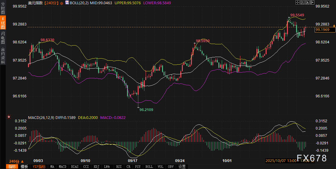 周一(10月13日),美元指数日内走强,而现货黄金同步上探4073.81美元/盎司。这一同涨格局在短期内颇为罕见,反映出市场避险偏好仍占上风。与此同时,10年期美债收益率上周五单日下挫2.63%后收于4.034%,2年期收益率亦回落1.89%至3.527%,债市资金流入迹象明显。政府关门已进入第13天,谈判僵局加剧不确定性,但美联储官员本周密集发声或提供些许指引。整体而言,美债收益率回落为美元提供支撑,却也通过避险渠道推升黄金,短期波动料将围绕政策信号展开。 ![]() 七次临时支出法案投票失败,下一次定于明日(10月14日),但知名机构分析师普遍认为通过概率偏低。财政部长贝森特的最新表态进一步强化了这一预期,他指出情况正趋于严重,已开始影响经济活动,包括暂缓非必需付款以优先稳定农业部门。多位市场观察者分享类似观点,认为这标志着谈判从前两周的硬扛阶段转向吹风期,但特朗普近期关税言论的搅动让开门前景蒙上阴影。 从技术面看,10年期收益率的回落已触及近期支撑位附近,短期内或在4.00%-4.05%区间震荡。历史数据回溯至2015年关门事件,当时收益率曲线同样短暂扁平化,但资金最终回流债市以避险。当前环境下,关门导致官方经济数据发布延迟,本周统计空窗期将放大债市波动。美联储官员日程密集,新任费城联储主席Anna Paulson明日首秀讲话,明日鲍威尔下午将分享观点,周三至周四斯蒂芬·米兰连续四场活动。这些信号料将直接传导至债市:若讲话偏鸽,收益率或进一步下行,吸引更多资金流入;反之,若强调通胀韧性,曲线可能陡峭化。一些资深交易员指出,这种数据真空已让债市成为避险锚点,资金从权益转向固定收益的迹象愈发清晰。 债市的这一动态并非真空发生,而是与全球不确定性交织。关门进入第三周,联邦机构大规模“Reduction in Force”通知已下发,数千员工受波及。知名机构报告显示,此类事件历史中,债市资金流入往往领先于经济影响显现,短期内收益率中枢下移概率较高。这为后续美元和黄金走势埋下伏笔:债市走软强化美元相对吸引力,却也激活黄金的避险溢价。 美元指数:债市信号下的双向拉锯 美元指数的日内走强至99.2139,表面上看似稳健,但细究其动力,主要源于美债收益率回落的支撑效应。240分钟图上,指数已突破布林带中轨99.0468,逼近上轨99.5090,显示多头动能初现。MACD指标DIFF线0.1596略低于DEA 0.2002,柱状线-0.0812暗示短期动能稍显疲软,但前高99.5549的压力位尚未有效突破,前低99.00则提供下档缓冲。基本面层面,债市资金回流直接利好美元,作为储备货币,其对收益率敏感度极高:10年期收益率每下行10个基点,美元指数往往获得0.1%-0.2%的额外支撑。 关门事件的持续发酵是这一传导的核心催化剂。财政部数据延迟意味着本周就业和通胀指标缺席,市场只能依赖美联储官员的口头指引。鲍威尔明日讲话料将聚焦政策路径,若重申渐进降息,债市收益率或延续下行,美元则在避险需求下小幅走高。一些机构账户强调,特朗普关税言论虽引发短期担忧,但关门僵局更直接放大债汇联动:资金避开权益,转向美元计价资产。历史类比2018-2019年关门期,美元指数曾在类似数据真空下震荡上行10%-15%,当前99.00-99.55区间或成为本周主战场。 技术面进一步印证这一逻辑。布林带上轨的接近暗示指数有上破潜力,但MACD柱状线的负值提醒多头需警惕回调。若债市收益率守住4.00%关口,美元指数短期内或测试100整数位;反之,若官员讲话意外鹰派,收益率反弹将迅速压制美元动能。总体上,债市已成为美元变数的“晴雨表”:其回落提供支撑,但关门引发的经济不确定性又限制上行空间,短期拉锯料将主导盘面。 ![]() 现货黄金的强劲反弹至4073.81美元/盎司,与美元同涨的表象下,债市传导的避险效应正悄然主导走势。240分钟图显示,价格已穿越布林带中轨4021.09,直指上轨4095.94,下轨3946.24则远在下方,提供坚实后盾。MACD指标DIFF 26.66高于DEA 22.14,柱状线9.02转正,确认多头动能加速,前高历史新高4084.97的突破已成定局,前低4000更像是遥远记忆。这一格局不同于常规美元-黄金负相关,而是债市收益率回落引发的资金溢出效应:投资者在关门不确定性中,将美债作为中转站,进一步推升黄金的配置需求。 基本面驱动显而易见。关门第13天,财政部长贝森特的警告——经济影响初现,付款暂缓——直接点燃避险火花。多位交易者视此为债金联动的典型案例:收益率下行虽利好美元,但关门数据真空放大全球风险偏好收缩,黄金作为终极避险资产受益。美联储本周讲话或加剧这一效应:若Paulson或鲍威尔释放鸽派信号,债市资金加速流入,黄金避险溢价将进一步抬升。历史关门期数据显示,黄金在类似环境下平均涨幅达3%-5%,当前上轨4095.94已成为即时目标。 技术面强化了债市传导的逻辑链条。布林带扩张暗示波动加剧,MACD金叉形态稳固,多头或借债市走软之势挑战4100关口。但需留意,若收益率意外企稳,黄金动能可能短暂受抑。总体而言,债市已成为黄金走势的“放大镜”:其回落不仅未压制金价,反而通过避险渠道放大上行动力,短期内金债正向联动料将延续。 ![]() 展望未来2-3日,美债收益率中枢或在4.00%-4.10%区间窄幅震荡,关门谈判的吹风期将考验市场耐心,若10月14日投票再度失败,资金回流债市的速度料将加快。美元指数则在债市支撑下,测试99.50-100.00区间的概率升至六成,但美联储官员讲话