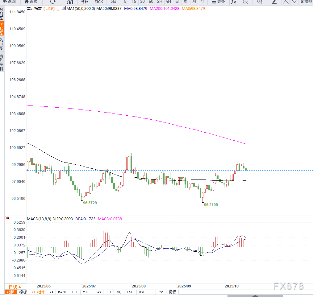 美元指数(DXY)在亚洲时段继续回落,延续前一交易日的弱势表现。目前指数已跌破99.00关口,为连续第二天走低。 ![]() 周二,美国国会参议院未能通过由共和党提出的临时拨款法案,政府停摆已进入第三周且暂无解决迹象。 部分经济数据的发布被迫推迟,令市场缺乏指引。投资者担忧,若停摆持续,将对经济增长和财政支出形成双重压力,从而进一步削弱美元走势。 一位华尔街经济学家指出:“政府停摆的延长意味着财政政策的不确定性增加,美联储或被迫加速宽松步伐。” 市场风险情绪仍受贸易担忧影响。美国总统特朗普威胁终止与亚洲大国在食用油及农产品领域的贸易往来,以回应该国暂停采购美国产大豆的决定。 此外,亚洲大国宣布对美国船只征收新的特殊港口费用,令市场对贸易关系的担忧升温。 从美元指数(DXY)日线图来看,价格在连续数日高位震荡后出现明显回调。指数现已跌破20日均线并逼近50日均线支撑(约98.80)。 若跌破该区间,可能触发进一步下行,目标位指向98.60至98.20区域。反之,若美元能重新收复99.30并站稳99.60上方,则有望恢复升势。 MACD指标显示动能柱持续缩短,RSI跌破中轴50,短线倾向下行,显示市场情绪偏空。 ![]() 当前美元指数的下跌主要由政策预期与政治风险共同驱动。美联储的鸽派转向削弱了美元收益率优势,而政府停摆的不确定性进一步拖累投资信心。 从技术面看,美元指数在99关口下方仍存在一定支撑,但若无法快速企稳,后续或进入更深回调区间。密切关注美联储官员讲话及即将公布的美国通胀数据,这将决定美元中期走势方向。 ![]() |