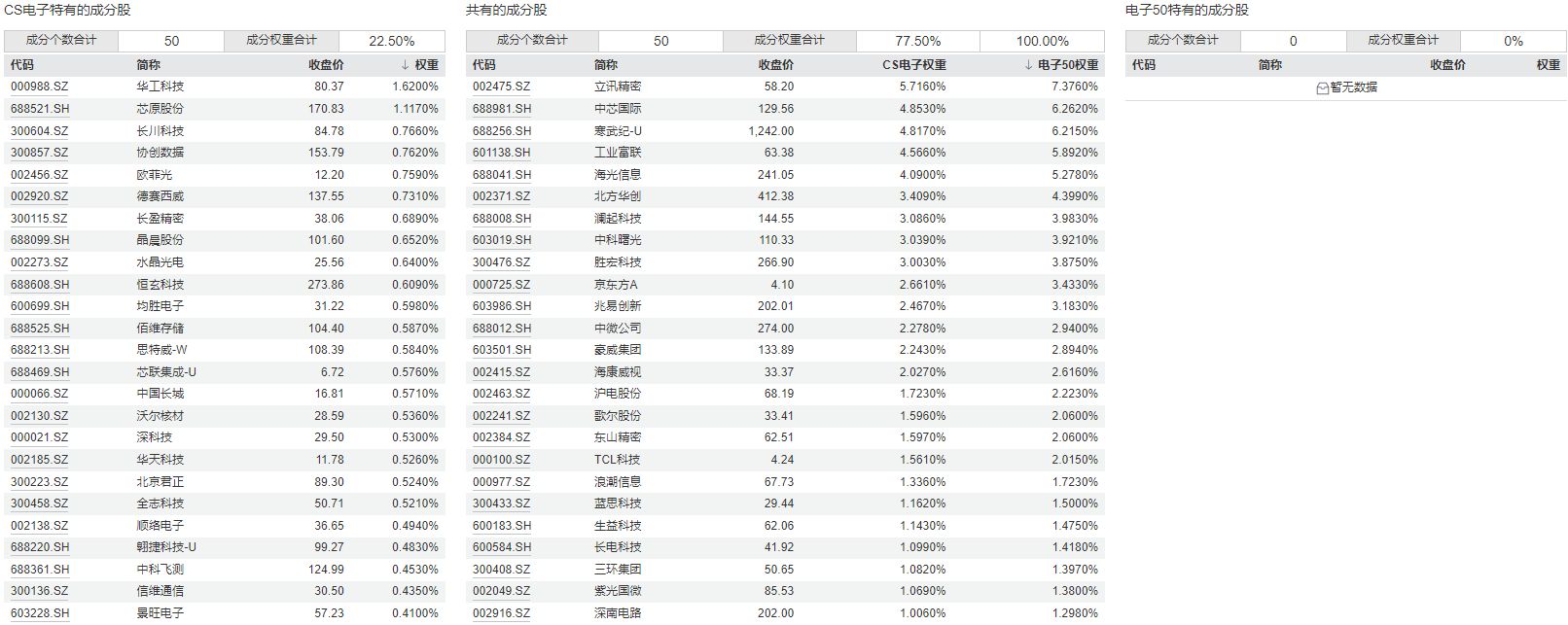 每经记者|黄小聪 每经编辑|叶峰 此前,我们已经分多期对比了多个同名ETF以及它们背后跟踪的指数,本期再来对比两个同名ETF:科技ETF和电子ETF。 科技ETF 目前有2只产品的名称都是科技ETF,其中科技ETF(159807.SZ),管理公司是易方达基金,跟踪的指数是中证科技50指数。 中证科技50指数是从科技相关行业中选取50只市值大、流动性好的上市公司证券作为指数样本,个股平均流通市值约为801亿元。 另一只科技ETF(515000.SH),管理公司是华宝基金,跟踪的指数是中证科技龙头指数。 中证科技龙头指数是从电子、计算机、通信、生物科技等科技领域中选取规模大、市占率高、成长能力强、研发投入高的50只上市公司证券作为指数样本,个股平均流通市值约为928亿元。 进一步对比两个指数的成分股,可以发现两个指数共有的成分股是27只,包括了中际旭创、恒瑞医药、中芯国际等,各自独有的成分股都是23只。 再从两个指数的过往表现来看,不管是近一年、近三年还是近五年,中证科技龙头指数的年化收益均高于中证科技50指数。 不过在波动率方面,从近一年到近五年,中证科技龙头指数的年化波动率也高于中证科技50指数。 继续对比两个指数目前的估值水平,经过近一年的上涨之后,Wind数据显示,两个指数目前的市盈率TTM均回升到了历史90%左右的分位,属于比较高的位置。 电子ETF 目前有2只产品的名称都是电子ETF,其中电子ETF(159997.SZ),管理公司是天弘基金,跟踪的指数是中证电子指数。 中证电子指数是选取涉及半导体、电脑与外围设备生产、电子设备和消费电子生产等业务的上市公司证券作为样本,共有100只成分股,个股的平均流通市值约为530亿元。 另一只电子ETF(515260.SH),管理公司是华宝基金,跟踪的指数是中证电子50指数。 中证电子50指数是选取电子和半导体等行业中市值最大的50只上市公司证券作为指数样本,个股的平均流通市值约为820亿元。 进一步对比两个指数的成分股,可以看到两个指数共有的成分股是50只,也就是说,中证电子指数的100只成分股完全覆盖了中证电子50指数的50只成分股,同时还比中证电子50指数多了50只成分股。 虽然两个指数成分股数量相差较大,但从两个指数过往表现来看,收益相差并不明显,不管是近一年、近三年,还是近五年,两个指数的年化收益率都比较接近,同时,两个指数的年化波动率相差也较小。 再对比两个指数目前的估值水平,经过这轮上涨之后,Wind数据显示,目前两个指数的市盈率TTM均回升到了历史90%以上分位,同样处于较高位置,投资时需谨慎。 封面图片来源:每日经济新闻 |