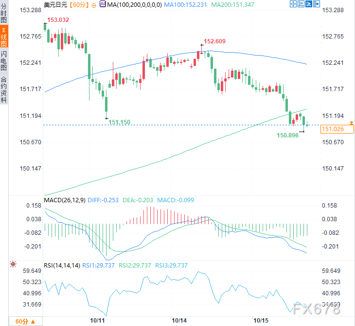 周三(10月15日)亚欧时段,美元兑日元震荡走弱,一度跌破151整数关口,刷新一周低点至150.90,跌幅约0.62%,目前小幅回升至151.18附近。特朗普贸易态势转变、地缘政治紧张局势升级以及美国政府可能长期停摆的担忧 ...
