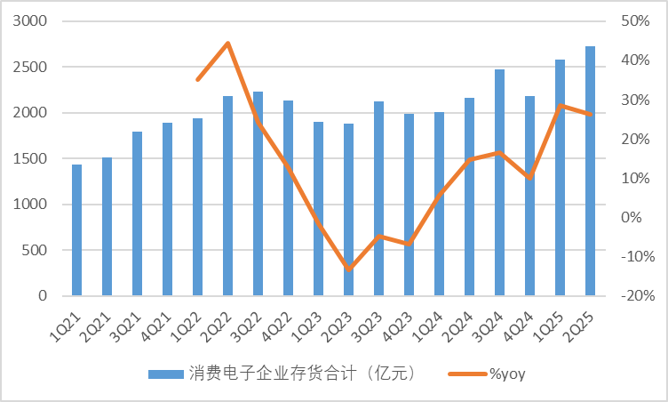 一、消费电子 全球智能手机销量——2025Q3预计yoy+3% 据omdia数据,受益于换机周期等因素驱动,全球智能手机销量在2025Q3有望同比提升3%。其中,三星方面Galaxy A系列及第七代折叠手机景气较高,市场份额以19%居于第一。苹果方面iPhone17普通版增长强劲,市场份额约18%。 资料来源:omdia 资料来源:omdia 全球PC销量——2025Q3预计yoy+6.8% 据omdia,2025 年第三季度台式机、笔记本电脑和工作站的总出货量增长6.8%,达到7200万台。其中,笔记本电脑(包括移动工作站)出货量增长4%至5720万台,而台式机(包括台式工作站)出货量增长17%至1520万台。距离Windows 10终止支持截止日期还有不到一周的时间,所有最终用户群的更新需求仍然是推动发货和激活增长的主要因素。 资料来源:omdia 新能源汽车销量——2025Q3预计同比增速在10%左右 据乘联会数据,7、8月份中国新能源汽车销量98.7万台、111.5万台,分别yoy+12.0%。+8.8%。预计Q3销量同比增速维持10%左右。 资料来源:乘联会 上市公司存货相对高位 从存货水位看,2025Q2消费电子上市企业合计为2729.67亿元,yoy+26%。存货增速自2023Q2见底后回升,今年以来在国补、AI等因素刺激之下,消费电子补库动作明显,存货水位或维持在较高位置运行,2025Q2存货水平是近年新高,预期Q3景气度良好。 资料来源:wind 台股PCB行业7、8月营收保持单位数增加 从台股月度数据看,由于去年较高基数,7、8月份保持个位数同比增速。台股PCB原料7、8月营收分别为415.84亿元、414.87亿元新台币,分别yoy+5%、+5%。PCB制造7、8月营收分别为734.47亿元、755.08亿元新台币,分别yoy+9%、+4%。 资料来源:wind Q3预期AI动能持续强劲 鸿海精密是AI服务器的主要代工厂之一,据其预期,AI伺服器收入Q3或同比增长170%,环比或成长300%。 从主要的台股代工厂商月度营收增速看,在去年同期较高基数背景下,Q3同比增速持续保持在高位,其中9月份出现了明显的提高,可能除了AI相关产品出货量有所增长之外,也受到消费电子需求刺激。 相关产品 消电ETF(561310)持仓涵盖消费电子品牌及各类零组件厂商,同时选取了强相关的几个PCB、半导体大厂持仓。截至10月14日PETTM为64.61x,位于标的指数上市以来98.18%分位。 资料来源:wind(截至10月14日) 二、半导体 1、半导体设计 CIS\SOC:受益于消费电子、家电、新能源车等下游的较高需求,相关企业景气度有望持续提升。cis方面,汽车智能化提升车用摄像头销量,下半年消费电子旺季有望提升CIS需求和高规格产品渗透率,此外,安防等行业相关摄像头需求维持稳定。SoC方面,国补、AI等刺激各类智能终端成长,消费电子需求增长也有望带动SoC景气度,Q3总体景气偏高。 存储:由于AI的虹吸效应,存储市场供应出现紧缺,涨价逻辑在Q3持续演绎,并有较大可能在Q4持续涨价,同时,产能紧缺有望贯穿2026年。海外原厂转向AI强相关的高盈利产品,传统、利基存储产能退出过快。今年三星、SK海力士、美光均通知DDR4产线逐步关停、重心转向DDR5及HBM。2025Q2 PC及服务器DDR4模组价格分别上涨13%~18%、18%~23%。2025Q3以来,预计Q4服务器eSSD、DDR5涨幅超10%,Mobile LPDDR4X/5X涨幅约10%~15%。 GPU:国产算力需求空间广大,今年市场规模可能达到500亿元美元。因此,目前国产GPU是一个卖方市场,出货量主要取决于制造端的产能供给情况,但Q2景气度相对一半,预期Q3可能出现明显回暖。 模拟:反内卷成效有望逐步释放,叠加前期中国的反倾销调查,模拟产品价格端有望触底反弹。目前,模拟行业龙头厂商业绩底部趋势渐渐清晰,后续有望持续改善。 2、半导体设备 国产替代在近年来高速发展,2024年CMP、清洗等环节国产替代率已达到30%以上,此外刻蚀、热处理也已超过20%,但目前量检测、光刻环节国产环节还在个位数或接近0。总体上看,国产替代空间广大。 资料来源:长江证券研究所 短期看,由于半导体行业存在交期较长的问题,预计Q3景气度总体稳中有进。中长期看,后续存储扩产、先进制程扩产等因素带来的订单增长可能。先进制程方面,2025年自主可控基调不变,国产算力维持高速发展,国产算力的渗透率可能在中期达到较高水位。在此背景之下先进制程产能需求提升,叠加智能手机高端化带来的先进制程扩产需求,相关设备需求景气良好。此外,目前存储出现较大幅度边际改善,3D堆叠技术增加工艺流程,相关设备需求同比边际提升。 3、相关产品 科创芯片ETF(589100)持仓分布科创板设计、制造和设备等,相对较为均衡,且有科创板较高弹性,截至10月15日PETTM为217.20x,位于标的指数上市以来98.24%分位。 资料来源:Wind(截至10月15日) 半导体设备赛道总体而言估值相对较低,以半导体设备ETF(159516)为例,截至10月15日PETTM为86.39x,位于标的指数上市以来71.26%分位。 资料来源:Wind(截至10月15日) 集成电路ETF(159546)持仓偏重设计,其中GPU、存储、SoC等含量均相对较高。截至10月14日PETTM为181.26,位于标的指数上市以来97.71%分位。 资料来源:Wind(截至10月15日) 芯片ETF全产业链均衡布局,全市场选取优质标的,可代表半导体行业整体景气。截至10月15日PETTM为147.89x,位于标的指数上市以来99.11%分位。 资料来源:Wind(截至10月15日) 科创人工智能ETF(589110)除了在科创板精选数字芯片设计个股之外,还增加了一部分应用持仓,具备两大引擎。截至10月15日PETTM为177.04x,位于标的指数上市以来76.56%分位。 资料来源:Wind(截至10月15日)