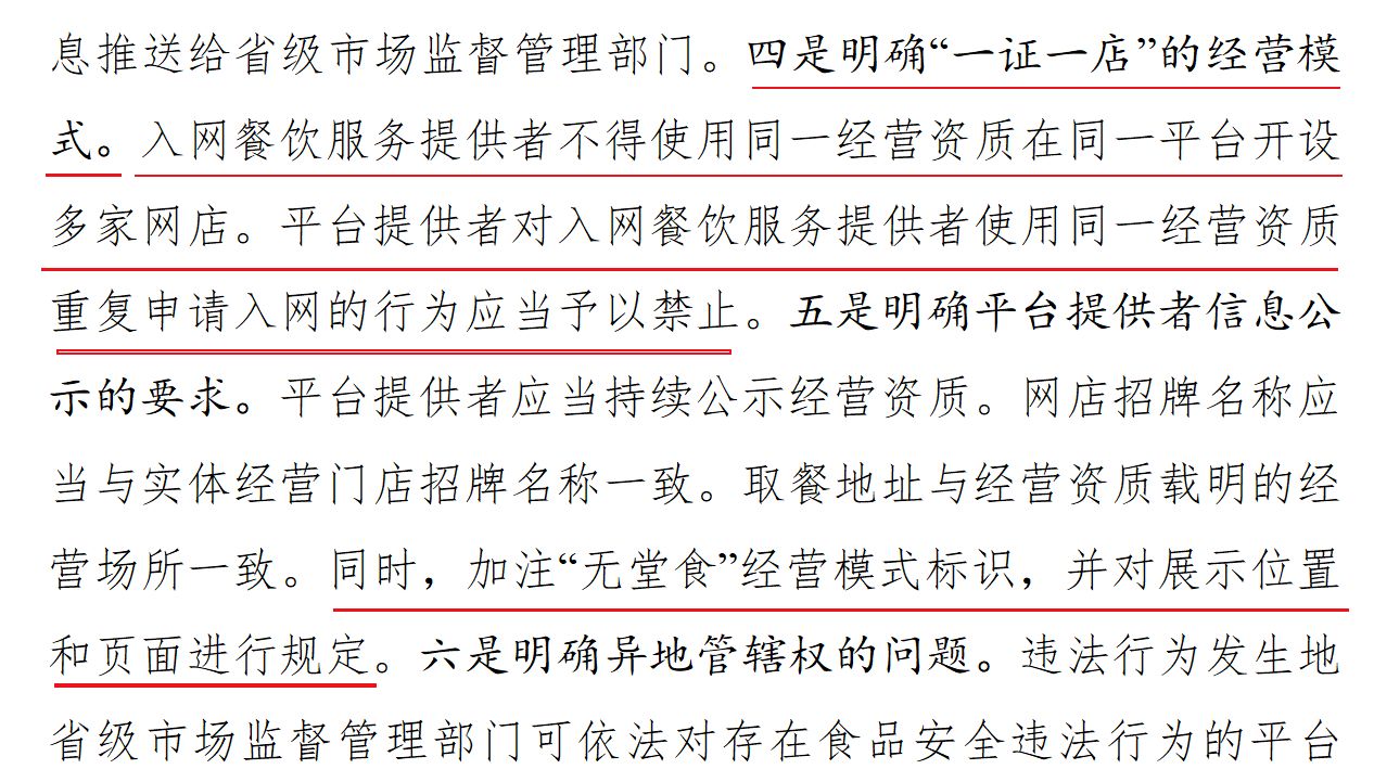 每经记者|赵雯琪 每经编辑|魏文艺 无堂食外卖、“幽灵外卖”等长期困扰外卖行业的食品安全问题,即将迎来更明确、更严格的国家级监管规范。 10月16日,国家市场监督管理总局(以下简称“市场监管总局”)发布《网络餐饮服务第三方平台提供者和入网餐饮服务提供者落实食品安全主体责任监督管理规定(征求意见稿)》(以下简称“征求意见稿”),面向社会公开征求意见,反馈截止日期为11月16日。 为了防止“幽灵外卖”,征求意见稿提出,网店招牌名称应当与实体经营门店招牌名称一致,取餐地址应与经营资质载明的经营场所一致,“无堂食”外卖还应加注“无堂食”标识。同时,还细化了平台与商家出现不合规行为的罚则。 图片来源:国家市场监督管理总局网站 事实上,在监管政策明晰化的同时,外卖市场的主要参与者早已嗅到风向变化,开始从过去侧重规模扩张的“流量之战”,转向聚焦食品安全、服务体验和运营效率的“品质之争”。 对于此次的新规征集意见,京东方面10月17日回应《每日经济新闻》记者(以下简称每经记者)称,非常欢迎市场监管总局就“网络餐饮服务落实食品安全主体责任规定”公开征求意见。同时表示,京东进入外卖市场以来一直坚持“品质外卖”的定位,打造行业最严的审核标准,上线以来,商家入驻审核通过率仅为40%。平台除要求商家提供齐全的资质资料供审核外,通过照片复检、定期巡检、视频验真等线上线下多重审核机制,杜绝“幽灵外卖”,保障品质和食品安全。 每经记者注意到,今年以来,各大外卖平台均在提升品质方面有所动作。例如,京东定位“品质外卖”,只限“品质堂食餐厅”入驻,同时推出“七鲜小厨”“24小时后厨直播”等运营体系。就在10月16日,美团宣布升级“繁盛计划”,其中包括投入5亿元推动“明厨亮灶”新基建等。饿了么则在9月初宣布与深圳市安康赢食安科技有限公司(以下简称“安康赢”)签署合作协议,共同推进外卖餐饮“互联网+明厨亮灶”建设。 这一集体转向清晰传递出一个信号:单纯的价格战已成过去式,以品质和服务为核心的价值竞争、生态竞争正在成为巨头关注焦点。“透明”也不再只是合规动作,正演变为行业竞争的新维度。 新规核心:杜绝“幽灵外卖”,“无堂食”外卖商家须显著标识此次发布的征求意见稿直指网络餐饮领域的多个食品安全痛点,核心在于堵塞监管漏洞,明确责任归属,并利用技术手段提升透明度。 每经记者注意到,新规着力厘清平台、商家与配送方的食品安全责任。征求意见稿拟明确平台与第三方机构、入网餐饮服务提供者及委托配送单位在食品安全上的责权边界。这有助于改变以往责任划分模糊、出现问题相互推诿的状况,促使各方各司其职,共同筑牢食品安全防线。 值得一提的是,资质审核与经营真实性成为监管重点。针对“幽灵外卖”(即无实体门店、借用或伪造资质上线经营)这一顽疾,征求意见稿细化了平台在入网审核、日常监测抽查及信息公示等方面的要求。明确入网餐饮服务提供者必须具有实体经营门店并依法取得经营资质,且不得超范围经营。尤为引人注目的是,征求意见稿明确禁止使用同一经营资质在同一平台开设多家网店,这将有效遏制部分商家通过“一证多开”方式扩大线上曝光却难以保证各店食品质量的乱象。 图片来源:国家市场监督管理总局网站 此外,征求意见稿还多次提及并强化了“互联网+明厨亮灶”的作用。平台被要求对入网商家的“互联网+明厨亮灶”进行审查,未实现者不得上线交易。同时,平台需提供技术支持,在商家主页显著位置标明跳转标识,并将相关视频信息至少留存14天。这一规定将后厨从“幕后”推向“台前”,使消费者能够实时监督食品制作过程,极大增强了消费信心,也为监管提供了追溯依据。 值得一提的是,征求意见稿提到,对于专注于外卖、不提供堂食的商家,要求平台在其主页面加注“无堂食”标识。同时,平台需持续公示商家经营资质,并确保网店招牌名称与实体门店一致,取餐地址与注册地址一致。这些措施旨在保障消费者的知情权与选择权,让“纯外卖”商家在阳光下运营,接受同等严格的监督。 平台转向:从“价格战”到“价值竞争”,品质与透明成新赛道事实上,早在今年3月,中办、国办发布《关于进一步强化食品安全全链条监管的意见》,明确要求推动平台和商户实行“互联网+明厨亮灶”,强化无堂食外卖监管和社会监督。而在此前的全国两会上,也有全国人大代表建议,要完善对无堂食外卖等新兴经营形态的管理要求,建立多部门联合监管机制。 如今随着国家层面发布征求意见稿,也可以看出外卖平台正通过资金、技术和资源倾斜,系统性助力商家提升运营水平和食品安全保障能力。 例如,京东外卖在今年年初进入市场时就定位“品质外卖”,只允许“品质堂食餐厅”入驻。京东方面在给每经记者的最新回应中再次表示,京东外卖入驻平台的餐饮商家,平台要求必须满足三种情形之一:高分堂食餐厅、品牌即提门店、线下即提门店。 具体来看,“高分堂食餐厅”指门店可落座就餐,同时在第三方美食点评类平台评分达到3.8分以上;“品牌即提门店”指门店虽无堂食落座区域,但有连锁品牌背书;“线下即提门店”指用户可现场点单打包带走的门店,如早点包子铺、卤味店、部分甜品蛋糕店、