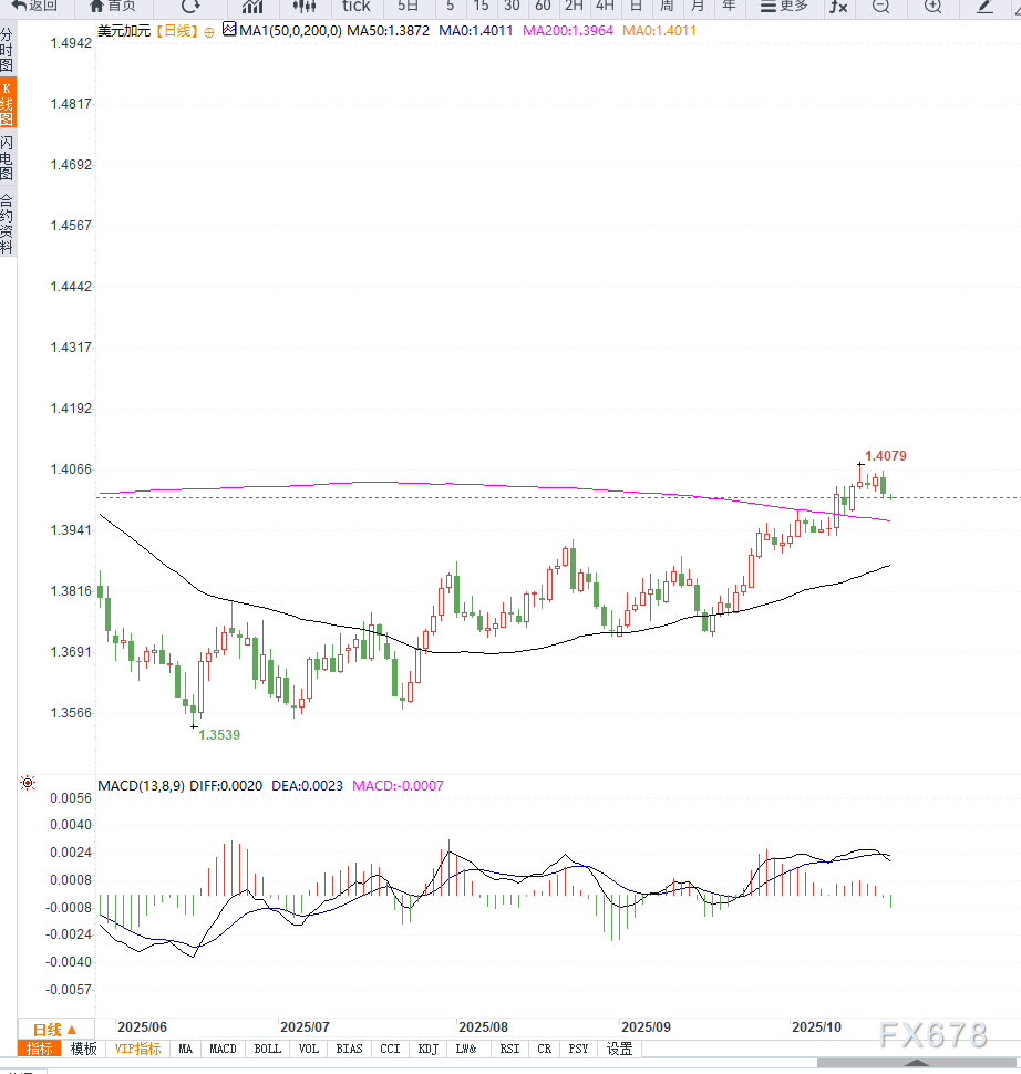 周一亚洲盘,USD/CAD 回落至1.4010附近,延续前一交易日跌势。美元承压的主要原因是美国政府停摆进入第19天,参议院上周四第十次未能通过临时资金法案,使停摆成为现代历史上第三长的事件。 ![]() 商品相关的加元面临油价回落压力。WTI 原油价格收窄前期涨幅,亚洲盘交易在57美元/桶附近。 国际能源机构(IEA)上周报告显示,OPEC+ 产量可能增加,市场供应可能出现过剩,这对油价形成压制,从而限制了加元的进一步贬值。 市场将关注加拿大央行(BoC)当天发布的商业前景调查,以评估经济状况对加元和美元兑加元走势的潜在影响。 日线图显示,USD/CAD 在 1.4050–1.4070区间遇到阻力,多次未能突破,短线存在回调压力。下方支撑位集中在1.4000心理关口及1.3960–1.3950区域。 技术指标显示,相对强弱指数(RSI)已从高位回落,动能减弱,短线可能在1.3950–1.4050区间震荡整理,等待政策与油价方向明确。 ![]() USD/CAD 短线承压,但仍受到全球贸易谈判缓和的支撑。市场关注油价走势和加拿大经济数据对加元的影响,短期维持区间震荡,谨防进一步下行,等待方向选择为主。 ![]() |