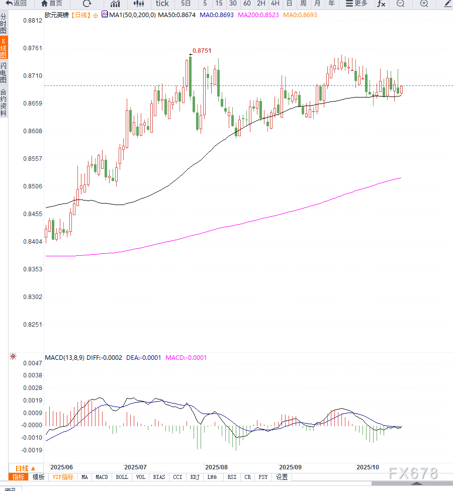 EUR/GBP 在欧洲早盘维持偏强走势,主要受英镑疲弱推动。英国财政大臣 Rachel Reeves 明确表示秋季预算不会提高财富税,但仍将通过其它税项与削减开支来修复财政缺口。 ![]() 与此同时,欧元内部同样存在潜在拖累。法国被评级机构下调至 A+,凸显预算压力与政治风险升温,使欧元缺乏单边上涨动能。 因此,EUR/GBP 的上涨动力更多来自英镑自身走软,而非欧元基本面全面改善。 总体来看,“英镑弱 + 欧元有限支撑”构成 EUR/GBP 震荡偏多格局,市场正等待欧洲央行官员 Schnabel 与 Nagel 的讲话,以寻求下一步政策信号。 从日线结构来看,EUR/GBP 维持稳步上行通道: 价格稳定于 20日与50日均线上方,显示多头趋势仍具延续性 RSI 位于 55–60 区间, 反映多头动能平稳但未过热 上方阻力关注 0.8720(近期高点)与 0.8760(通道上轨) 下方关键支撑位于 0.8645(20日均线),进一步守位支撑看 0.8600日线偏多趋势未被破坏,若企稳 0.8645 之上,多头将继续保持主导 ![]() 从结构来看,此轮 EUR/GBP 的上行并非传统意义的“欧元走强行情”,更像是“英镑自身被动走弱”推动。因此,趋势虽偏多,但持续性仍需观察两点:英国财政执行的可信度 与 法国风险是否扩大化。 若英国财政风波缓解,则多头动力可能削弱;反之,若欧元区出现利多催化,则可能驱动行情进入更强上行周期。 ![]() |
