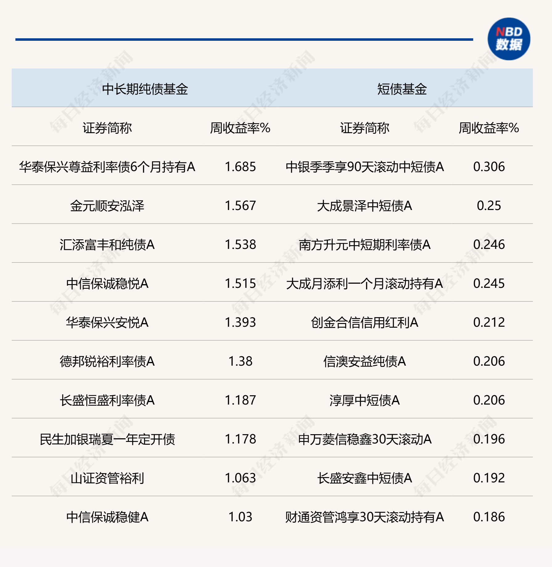 每经记者|任飞 每经编辑|叶峰 上周,债市出现修复行情,各主要债券收益率有所下行。与之对应,权益市场上周波动明显,尤其是A股市场上周回调较深,成为债市行情修复的又一推手。然而,业内对于当下的债市修复空间仍持有谨慎的态度,认为目前扰动债市的因素还有许多,债市接下来仍以震荡的形式发展,需要应对避险情绪变化带来的影响。 债市修复,纯债基金业绩有所提升 上周(10.13-10.19),债市出现修复性行情,中证10年期国债到期收益率由1.85%下行至1.82%;10年期国开债与国债利差由18.5bp下行至16.54bp。 不仅是国债品种,信用债方面,中证5年期企业债到期收益率(AAA)由2.16%下行至2.1%;5年期企业债(AAA)与国债利差由54.95bp下行至51.44bp。 与之对应的是权益市场的回调明显,特别是A股方面,上周各大指数跌幅明显,也使得一部分避险资金选择债市避险,进一步推升了债市的修复行情。 从基金的表现来看,上周纯债型基金出现了业绩修复,相较于连续数周均值低于0.01%的情况,上周中长期纯债基金、短债基金的业绩均值均有不错的提升。Wind统计显示,前者的均值上周录得0.17%,后者录得0.07%。 头部业绩产品的统计当中,华泰保兴尊益利率债6个月A上周上涨1.68%,是纯债基金当中业绩最好的一只,总体统计显示,有10只纯债基金的单周业绩在1%以上。这样的单只基金周收益统计情况在过去数周很少出现。 不过,对于接下来的债市展望,不少分析依然偏谨慎。诺安基金分析指出,四季度的经济数据可能会有收敛,一是因为去年基数较高,二是高频数据显示内需和地产有弱化趋势,需要增量政策刺激。 此外,贸易摩擦也存在一定不确定性,尾部风险有所增加,基本面对债券的有利因素在积累。但机构行为方面,公募销售新规带来的影响可能还没被充分定价。因此策略上,中短端杠杆套息为主、利率债波段操作的确定性更高。 债基密集提升净值精度应对冲击 相比于债市的短期修复,资金的动向更有参考意义。从基金的表现来看,近期的债基赎回压力依然不小,许多基金都在提升净值精度应对冲击。 近期,圆信永丰丰和中短债C、华泰紫金智盈E等多只债基都在发布提高基金份额净值精度的公告,反映出部分产品正面临一定的流动性管理压力。本月以来已有东兴基金、宏利基金等十余家基金公司先后披露旗下债券型产品遭遇大额赎回,相关提升净值精度的公告数量已超20条。 有分析指出,受三季度债券市场调整影响,机构投资者基于自身资产配置调整需求,部分债券型产品出现阶段性资金流出,这属于市场环境下的正常流动性管理行为。目前“股债跷跷板”效应仍在,导致新增资金进入股市的概率可能远大于进入债市,加上公募改革的赎回新规约束,负债端面临一定赎回压力且短期内可能无法明显缓解。 中信证券的研报分析指出,近期债市出现修复行情,影响因素包括经贸摩擦和通胀读数。展望四季度债市表现,修复行情取决于财政政策和货币政策的配方,货币政策方面仍有增量措施值得期待。当前债券收益率上行风险有限,债市修复行情仍有延续的基础。 进一步分析指出,货币政策、财政政策,央行公开市场操作的投放,信用违约事件的发生频率,经济增长、通胀等数据以及海外风险事件等均是目前扰动债市的风险因素,应该结合相关因素及市场避险情绪的变化调整投资策略。 说明:上周各类型债基头部业绩产品统计 来源:Wind 封面图片来源:每日经济新闻 |