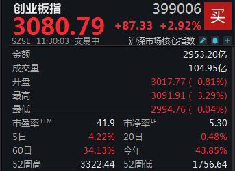 每经记者|刘明涛 每经编辑|叶峰 10月21日,大盘高开后单边上行,创业板指强势领涨。截至上午收盘,上证指数涨1.2%报3910.13点,深证成指涨1.97%,创业板指涨2.92%,北证50涨1.63%,科创50涨2.13 ...