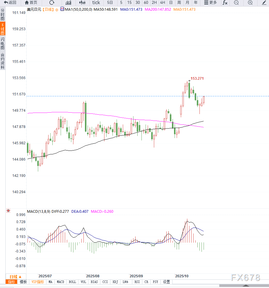 美元/日元在亚洲盘持续上行,日元承压,现交投于约 151.40 附近。日本新任首相高市早苗上任后,市场预计未来日本可能采取更多财政刺激政策,这加剧了日元短期贬值压力。 尽管如此,日本通胀已连续三年维持 ...