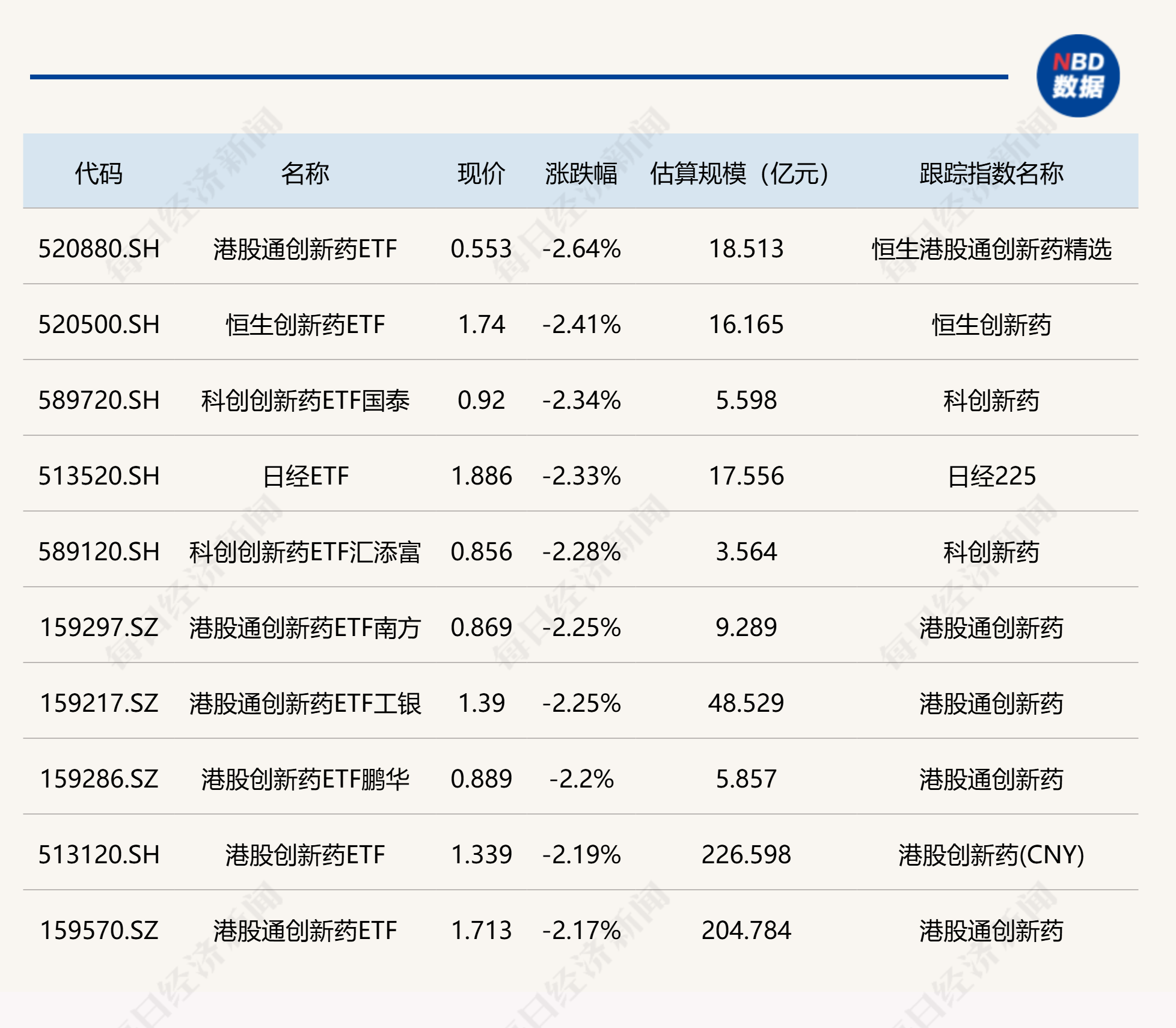 每经记者|叶峰 每经编辑|彭水萍 市场探底回升,三大指数全线收红。从板块来看,深圳本地股全天领涨,煤炭板块集体拉升,锂矿概念股午后走强。下跌方面,工程机械板块走弱。 ETF涨跌幅方面,国证2000ETF基金涨近5%,煤炭、化工相关ETF涨超2%。 国证2000ETF基金尾盘价格出现异动,截至收盘溢价4.25%。 化工方面,有券商表示,当下化工品盈利或已筑底,基本面下行风险充分释放,化工白马有望迎来估值与盈利双击修复。供给短缺约束的行业率先迎来弹性,建议重视需求确定性向上的方向,重视化工高分红资源股价值重估。 下跌方面,港股创新药相关ETF跌超2%。 有分析认为,历经十年转型,中国创新药产业已逐步迈入收获兑现期。当前,国产创新药获批上市数量稳步上升,出海交易屡爆大单,创新药板块有望是热点高低切风格下的资金选择。 封面图片来源:每日经济新闻 |