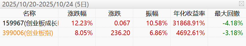 近期,跟踪创成长指数的创业板成长ETF(159967)持续走强,近5个交易日上涨12.23%,同期创业板指数上涨8.05%,5个交易日超额涨幅达4.1个百分点。关注创业板的投资人可以重点关注创业板成长ETF。