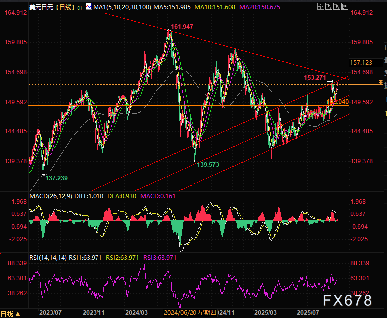 0周三(10月24日)美元兑日元继续反弹,日本9月CPI录得2.9超出预期,由于市场对高市交易的押注,日元并没有停止贬值,同时日本首相高市早苗周五表态称,“经济优先、财政随后”的原则将是其施政方针的基础。高市早 ...