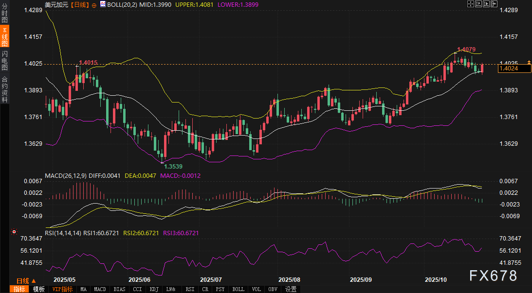 0周五(10月24日),外汇市场再度聚焦北美货币对,美元兑加元汇率报1.4027,较前一交易日上涨0.26%。这一波段内升势源于加元在基本面不确定性下的疲软表现,同时美元指数维持在相对强势区间。近期市场情绪受加拿大 ...