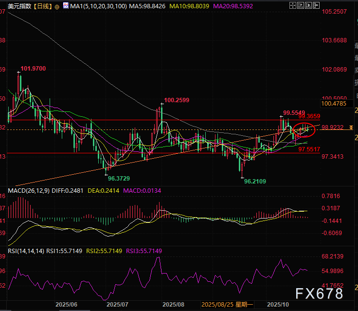 周五(10月24日)欧美时段,美元指数原本继续维持了连续上涨的态势,一周4天收涨,直到晚上美国发布了原本推迟的9月CPI数据。 ![]() 周五早些时间欧元区初值PMI表现优于市场预期,但欧元仍缺乏有效上涨动能,没有明显表现;同时法国CAC40,欧洲斯托克600指数等均高开低走,而随着美国通胀数据的发布,欧元连同上午PMI超预期的部分一起得到了宣泄,一举涨超0.3%,各国指数也直接创出日内新高。 国债市场方面,除日本10年期国债收益率下跌1个基点外,其他主要经济体国债收益率多数上行,全球无风险利率整体呈偏强格局,暗示市场风险偏好小幅抬升。 ![]() 美联储将更加聚焦于劳动力市场 从风险平衡角度分析,劳动力市场进一步恶化的风险成为全市场的焦点,这也为美联储维持宽松倾向提供了支撑。 当前市场已基本消化美联储下周降息的预期,且由于会议前的缄默期已正式开启,美联储官员几乎无法通过公开言论改变市场预期,短期政策预期将保持稳定。 本身美联储处在通胀、增长两权相害取其轻的困难处境中,只能给通胀找说辞,这次CPI公布后,美联储将减少通胀相关的后顾之忧,将注意力放在经济增长上。 今日公布的美国9月剔除住房的核心CPI也不及预期,将加剧数据对美元的潜在压制。后续10月美国初值PMI,结合密歇根大学消费者信心指数终值与堪萨斯城联储服务业调查对市场的影响有限,除非数据出现超预期的大幅修正,否则难以改变当前市场趋势。 同时市场需要密切关注下周二的美国谘商会消费者信心指数,作为对美国经济增长数据的补充。 美元走弱将提供全球宽松货币环境 美国CPI不及预期的发布对于全球经济是一剂良药,受到美国CPI不及预期影响,黄金、美股、欧洲股市集体拉升。 国际货币基金组织(IMF)亚太部主任克里希纳?斯里尼瓦桑近期在采访中发出警告:若美元走强、利率上升导致全球金融环境收紧,亚洲经济体抵御美国关税的韧性可能面临严峻挑战,需警惕外部环境变化对区域经济的冲击。 斯里尼瓦桑指出,若美联储继续实施降息政策、美元随之走弱,亚洲各央行将获得政策空间——在无需担忧资本外流风险的前提下,可通过放宽货币政策支持本国经济,这将为亚洲经济提供有利的外部环境。 此前,低利率与长期收益率下降的市场环境,帮助亚洲各国政府及企业以低成本获取融资,从而在一定程度上缓解了美国加征关税带来的经济压力。 IMF亚太地区经济展望 IMF周五发布的最新《2025年亚太地区经济展望》报告显示,2025年亚太地区经济增速预计将达4.5%,虽略低于去年的4.6%,但较4月预测值上调0.6个百分点,上调动力主要得益于亚洲经济体强劲的出口表现——许多企业为规避美国更高关税,加快了货物出运速度,提前释放出口需求。 不过该报告也明确警告,亚太地区经济面临的下行风险较大,2026年增速预计将放缓至4.1%,增长动能或逐步减弱。 通胀方面,即便在后疫情时代需求回升、俄乌冲突推高原材料价格的背景下,亚洲地区物价水平仍持续低于全球其他地区。 斯里尼瓦桑指出,这一现象表明亚洲各央行具备稳定通胀预期、压低通胀的能力,核心原因在于公众信任这些央行能够免受政府干预,保持政策独立性。 总结: “剔除住房的超级核心服务业CPI——这是反映美国潜在通胀趋势的关键指标。8月该指标同比涨幅连续第二个月维持在3.2%,表明美国向美联储2%通胀目标推进的进程陷入停滞,而本月降为3.1%显示出控制通胀的进程并未受到影响。 当前物价上行风险尚未进一步加剧,这为美联储下周再降息25个基点甚至更多(将目标利率区间降至3.75%-4.00%)保留了巨大政策空间。 此外,限制性货币政策可能会加剧本已脆弱的就业形势,并导致联邦基金利率期货进一步下调板上钉钉。从基本面来看,美元下行趋势尚未改变,短期反弹或难以持续。” 技术分析: 通过美元指数日线可以看出,美元指数虽然本周持续反弹,但依然连续三日收在关键趋势线之下(之前头肩顶形态颈线),同时这波反弹目前未涨过100多空线,甚至未涨过非农阴线50%分位的99.36关键位。 综上所述美元指数依然处于反弹格局,并没有出现反转的迹象。 ![]() 北京时间21:29,美元指数现报98.86。