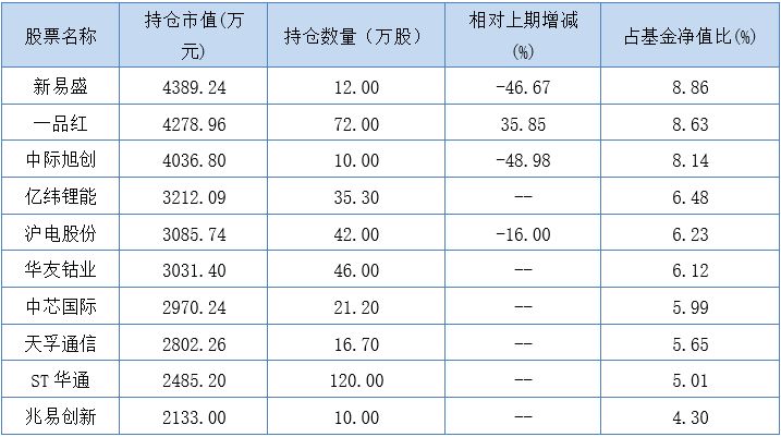 从他的操作来看,调仓幅度比较大。增持一品红,减持新易盛、中际旭创、沪电股份。同时,亿纬锂能、华友钴业、中芯国际、天孚通信、ST华通等个股新进前十大重仓股,胜宏科技、芯源微、莱绅通灵、潮宏基、生益科技、春风动力则掉出前十大重仓股行列。