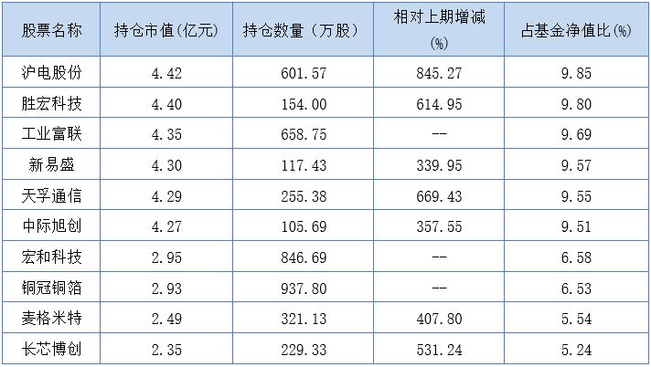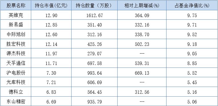 另外,源杰科技、光库科技、东山精密等个股新进重仓股行列,长芯博创、仕佳光子和方正科技则掉出了前十大重仓股。