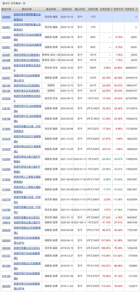 2、ETF主题机会 在算力不断扩张,技术迭代不断加快的背景下,光通信行业复苏节奏已显著提前,“保交付”逐渐成为行业新特征,交付能力已成为企业最核心的竞争力。拥有强大的供应链整合能力、产能全球化规模优势以及领先的创新研发能力的龙头企业,将能更好地应对挑战,在“保交付”的新时代中持续扩大领先优势。可关注通信ETF、5GETF等产品。 四、明日重点关注新发基金1、基金简称:西部利得专精特新量化选股混合 基金类型:混合型证券投资基金 基金经理:盛丰衍 业绩比较基准:华证专精特新100指数收益率×90%+中债综合全价指数收益率×10% 基金经理过往业绩: