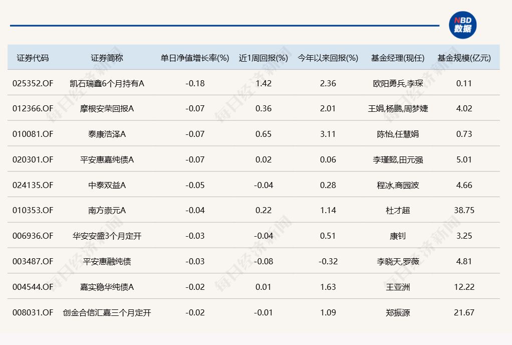 3.单日债基涨跌幅榜