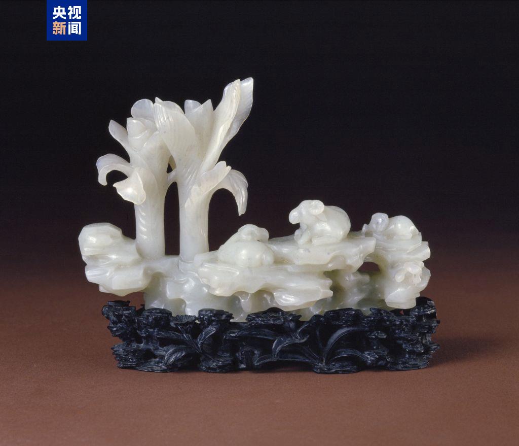 △青白玉三羊开泰笔架,故宫博物院藏。