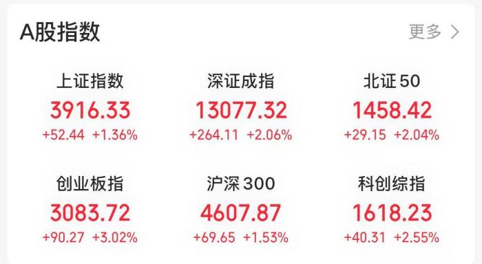 021日,A股三大股指集体上涨,沪指重回3900点上方,创业板指表现强势。截至收盘,沪指涨1.36%报3916.33点,深成指涨2.06%报13077.32点,创业板指涨3.02%报3083.72点。全市场超4600只个股上涨,全天成交额达18927亿元 ...