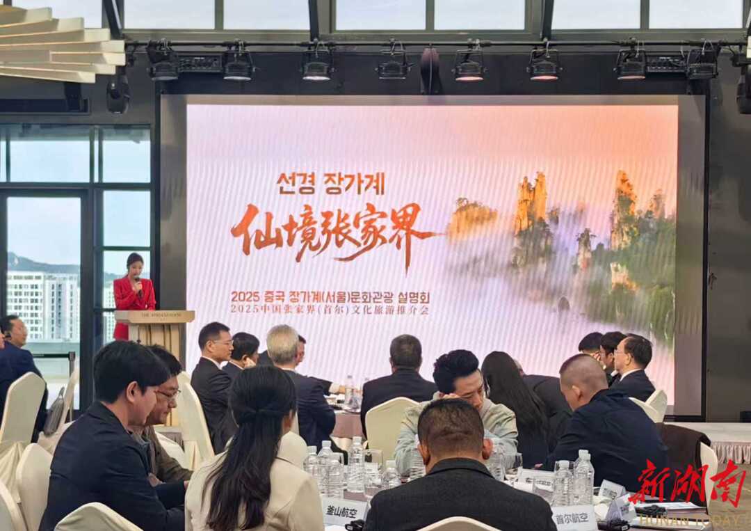 毛万春一行出席“仙境张家界,峰迷全世界”张家界文旅推介会。 在韩期间,毛万春一行出席了“沁潇湘”品牌(韩国)推介暨交流活动、“仙境张家界,峰迷全世界”张家界文旅推介会,助力湖南与韩国共建美食桥梁,拓展文化交流,共促产业合作,实现互利共赢;通过资源互推、客源互送、市场共享,进一步深化湖南与韩国在文旅方面的合作,共促两地人民友好往来。 毛万春一行还与中国驻韩国大使戴兵进行了工作交流。  |