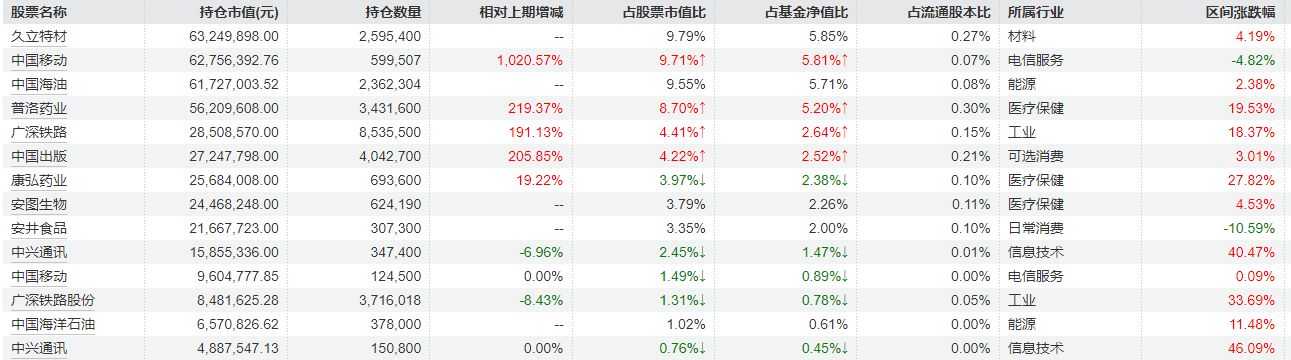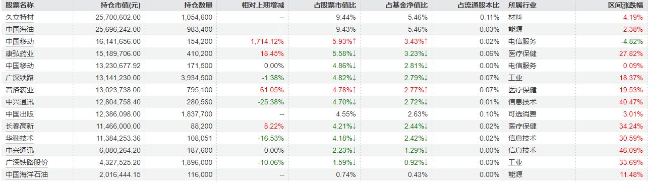 每经记者|任飞 每经编辑|肖芮冬 10月28日,大成基金首席权益投资官徐彦管理的基金发布三季报。《每日经济新闻》记者注意到,此前因建仓速度慢而备受争议的大成兴远启航,已经在三季度内完成建仓。不过,该产品股票资产占基金总资产的比例为60.89%,对于偏股混合型基金而言,这样的权益持仓占比仅符合最低要求。徐彦在季报中表示,选股依然是找有安全边际的个股。 事实上,徐彦在管基金的重仓股配置大同小异,康弘药业、中国海油、普洛药业等较多出现,很少能看到所谓的热门个股。此外,他对建仓依然十分谨慎,多次提出一些规模较小的在管基金因为份额增加,提高了操作的难度,而新基金的建仓难度更大。 再谈“建仓难”,争议产品权益仓位仅六成今年三季度,大成兴远启航混合完成了建仓——该基金三季报的运作总结中,第一句话就鲜明点出这一点。 此前,该基金曾因建仓速度慢而备受争议。一般来说,基金的建仓时间可以长达6个月,但这不是硬性要求。事实上,基金经理可以根据市场表现灵活调整,一些被动指数型基金甚至成立当天就可以完成建仓。 公开信息显示,大成兴远启航是一只偏股混合型基金,今年3月成立,三季度末是其建仓的最后期限。虽然已经建仓完毕,但记者也发现,徐彦依然持有相对谨慎的态度,这一点从他的仓位和配置中就能看出来。 首先,作为一只偏股混合型基金,其权益仓位的最低要求一般是60%,也就是权益资产的规模占比要在基金资产规模的60%以上。从三季报来看,这只基金的权益资产全部配置了股票,占基金总资产的比例为60.89%,可以说是刚好满足要求。 此外,该基金并没有投向债券资产,毕竟在当下债市环境中,债券资产的配置难度较大且投资性价比相对较低。季报披露信息显示,该基金配置了银行存款和结算备付金,这部分资金占比达到33.23%。 就重仓股来看,久立特材、普洛药业、中国海油、中国移动、长春高新等出现在名单中。上述个股也是他此前多个季度、多只在管基金喜欢重仓的标的。 |