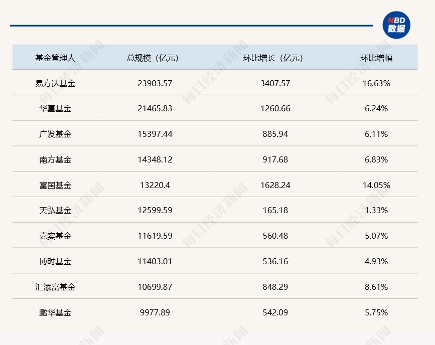 指数基金成增长“利器” 易方达、华夏ETF规模单季度增长超千亿元